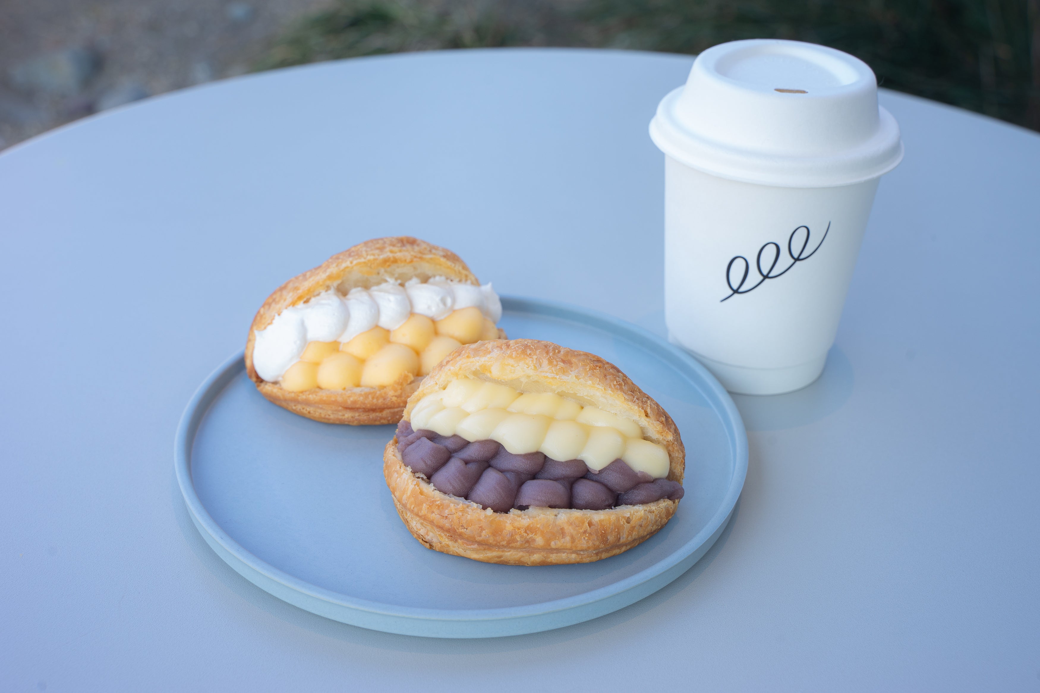 3階はJINSが手がけるカフェ「ONCA COFFEE(オンカ コーヒー)新宿店」。前橋のロースタリーで一粒一粒丁寧に選別された、良質な豆で淹れる一杯をお楽しみいただけます。注目メニューは、自社ベーカリー「EVERYPAN(エブリパン)」との共同開発で生まれた、毎日店内で焼き上げる本店舗限定の「THE PIE(ザ パイ)」。丁寧に折り重ねた128層のパイ生地は、驚くほど軽やかな食感で、味は「こしあん・バター」と「カスタード・ホイップ」の2種類を展開。メガネ加工の間、淹れたてのコーヒーとの究極のペアリングをご堪能ください。また、同フロアには完成したアイウエアを非対面で受け取れる「PICK UP LOCKER(ピックアップロッカー)」も設置。美味しさとアートが彩る心地よい空間で、お買い物中の待ち時間をより豊かにお過ごしください。