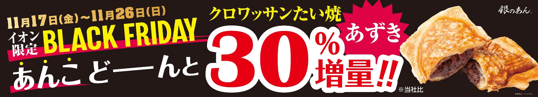 【クロ企画? クロ価格? 】 築地銀だこ、銀のあんが、『イオン ブラックフライデー』 に参加! 特別価格 (クロ価格) の回数券販売や、大人気 「クロワッサンたい焼」 の “あずき増量” を実施!