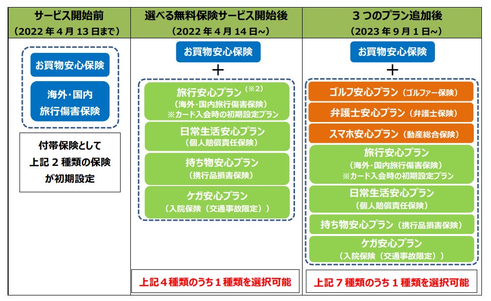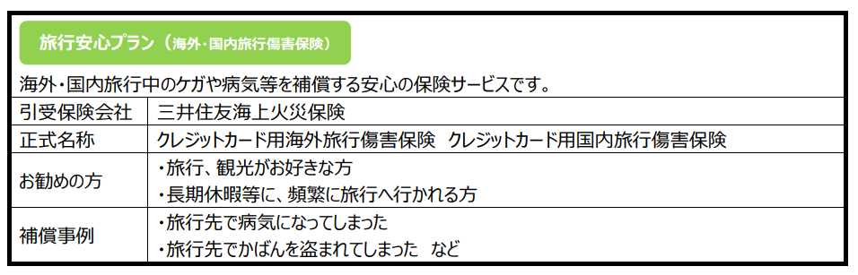※2:旅行安心プランは、従来よりカード付帯保険としてサービス提供している海外・国内旅行傷害保険です。