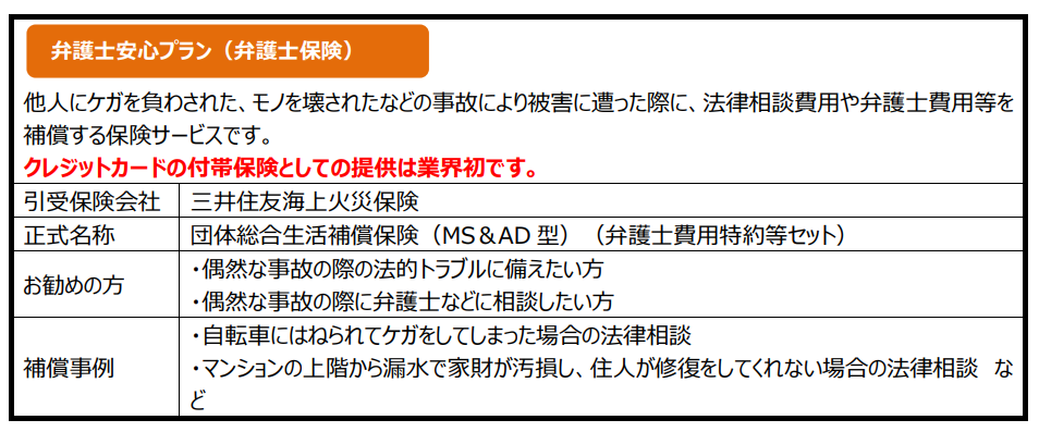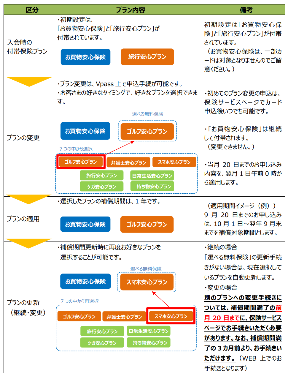 提携カード、一部法人カードは「選べる無料保険」の対象とはなりません。