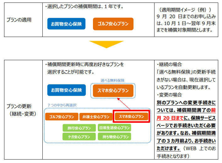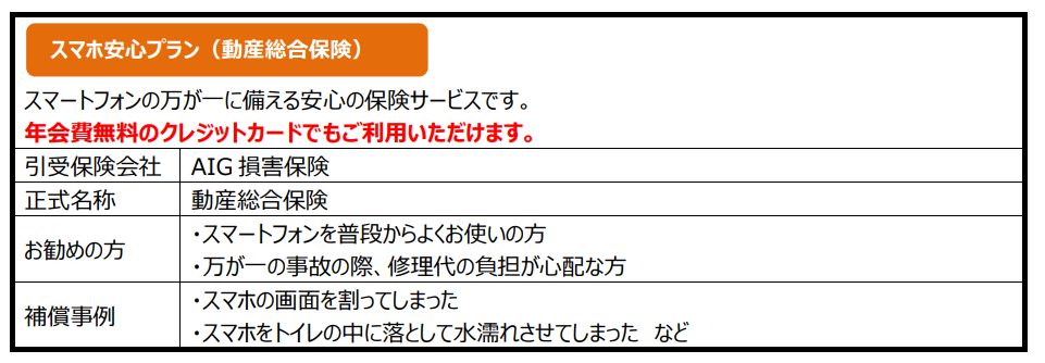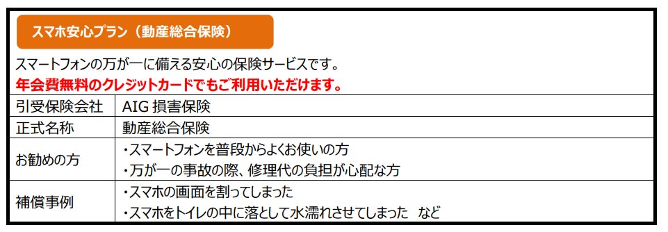 (引受保険会社:三井住友海上、AIG損害保険(スマホ安心プランのみ))