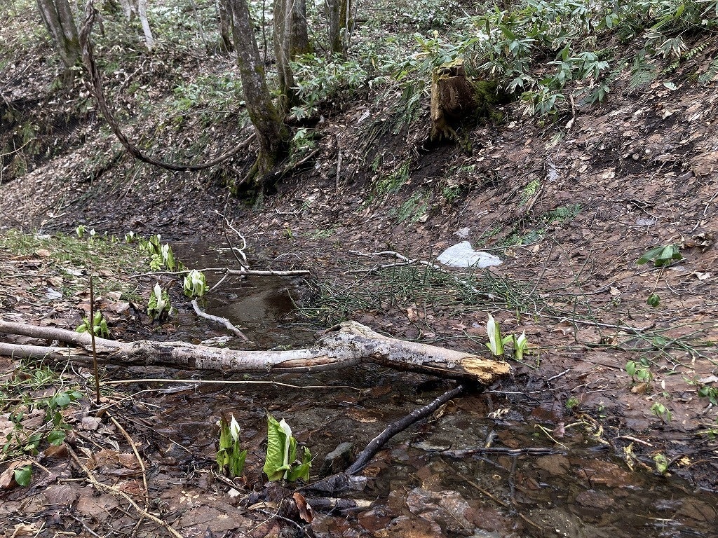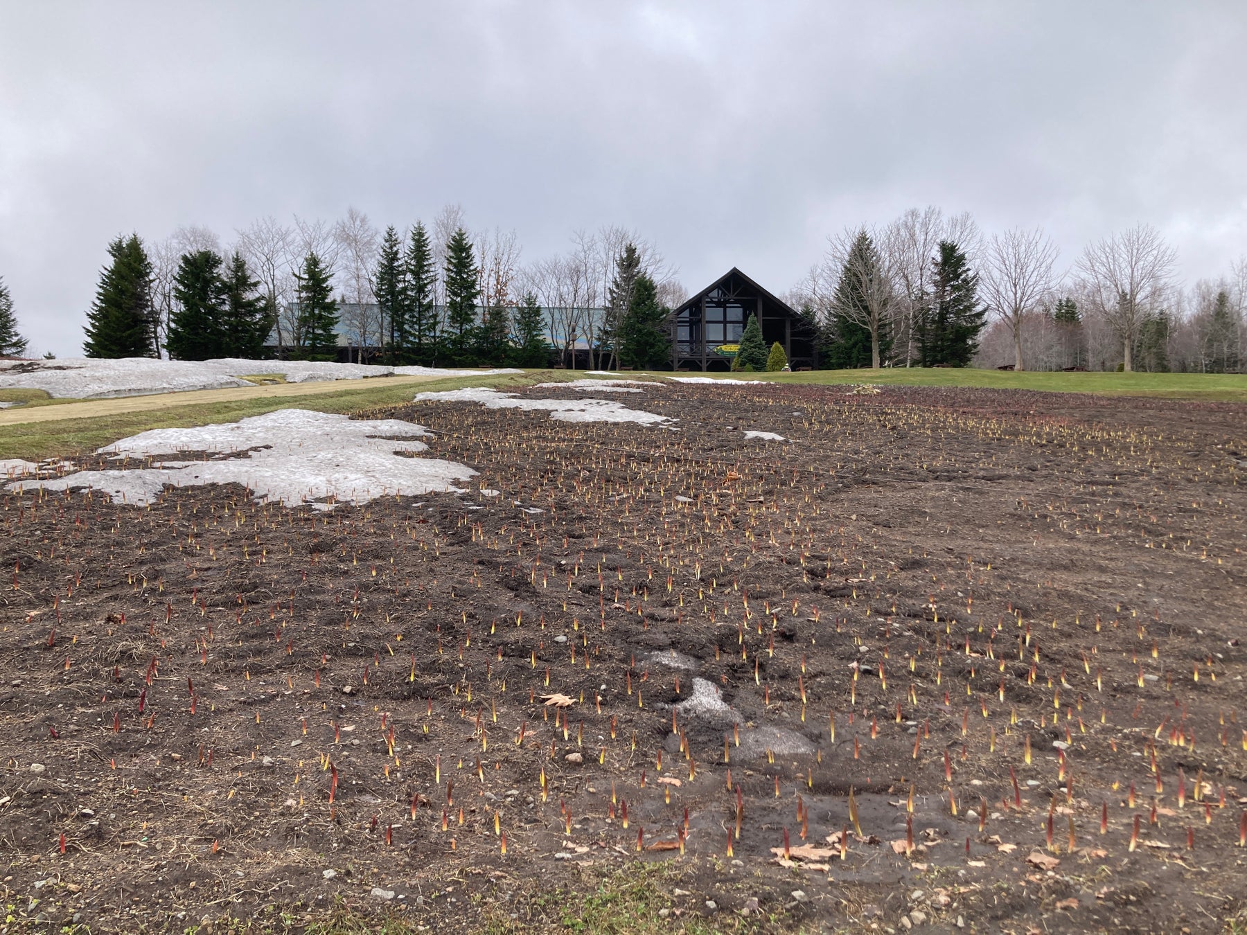 まだ一部に残雪がありますが、融雪の進んでいる場所では、チューリップの芽が出ている様子を見ることができます。