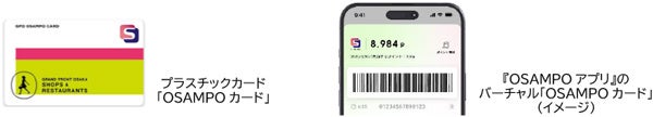 ・現在、プラスチックカードの「OSAMPOカード」をお持ちの方が『OSAMPOアプリ』と連携すると、同アプリ上でもご利用いただけるようになります。なお、プラスチックカードの「OSAMPOカード」も引き続きご利用いただけます。