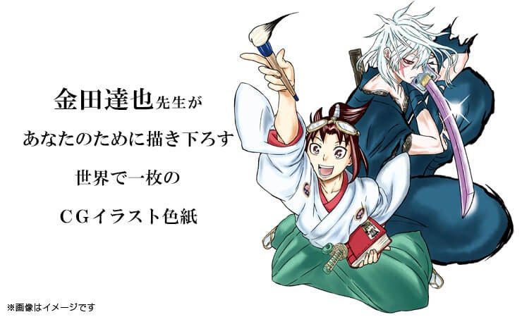 今回は、代表作に「サムライ・ラガッツィ -戦国少年西方見聞録-」「死.tv」などを持つ金田達也先生が、リクエストに応えて描き下ろしたセミオーダーのCGイラストを印刷した色紙に、直筆サインと宛名を添えてお届けするCGカラーイラスト色紙の販売を開始いたします。