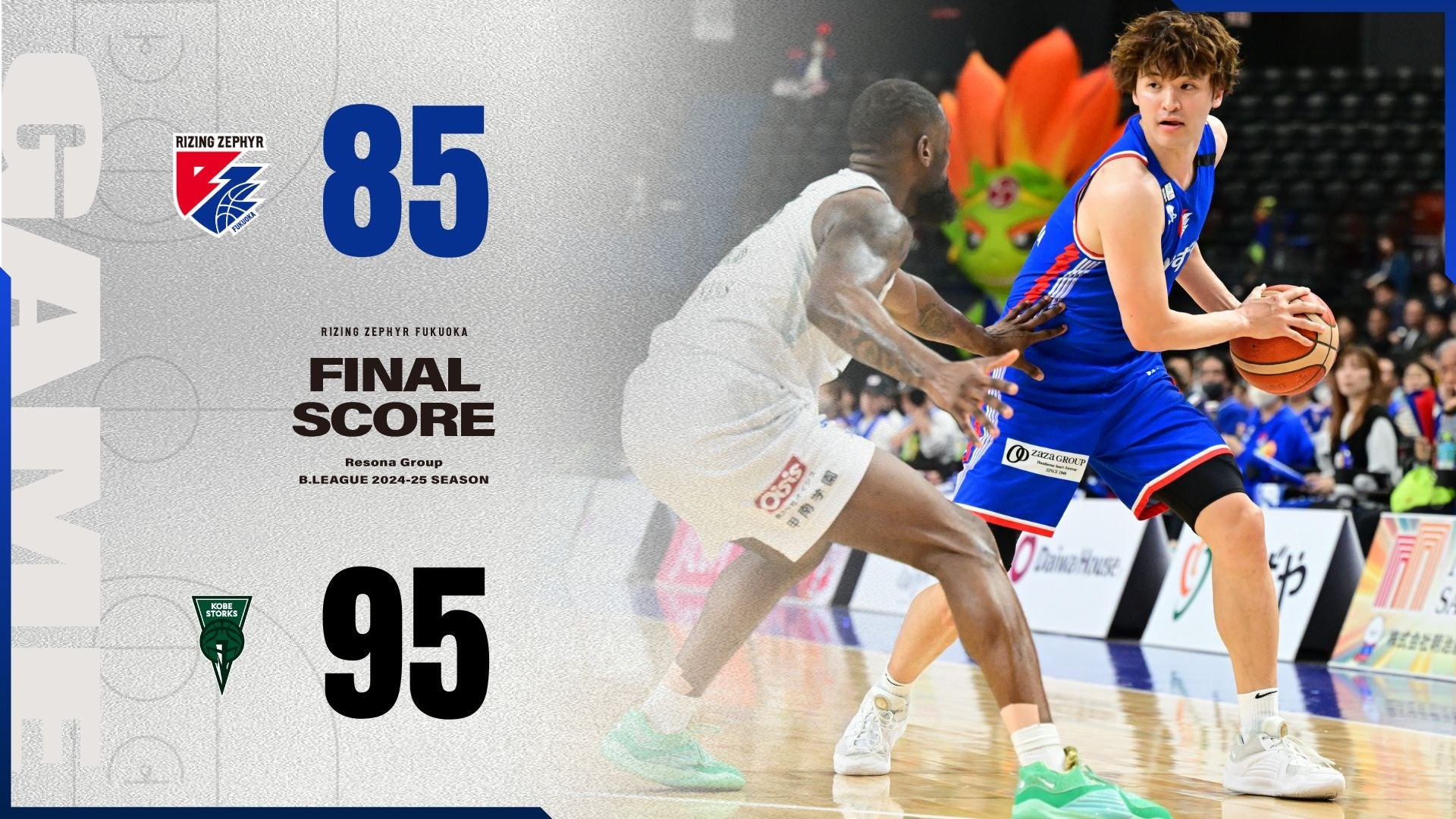 2025年3月26日(水)に開催した、りそなグループ B.LEAGUE 2024-25 シーズン【ライジングゼファーフクオカ vs.神戸ストークス】は、“福岡 85-95 神戸”で福岡の敗戦となりました。