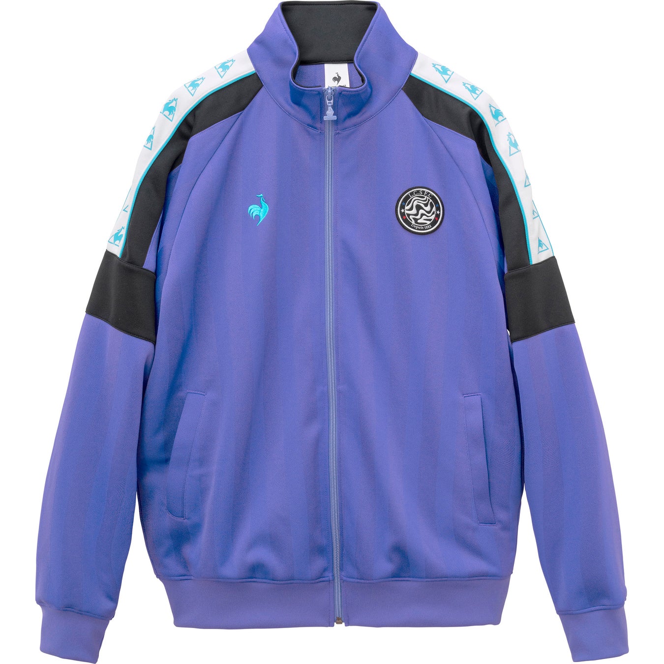 商品特徴:袖や背中部分のクラシックロゴや配色が特徴のジャージジャケット。90年代のトレンドを取り入れ、肩の落ち感があるシルエットに。左胸にはオリジナルワッペンを配置しました。