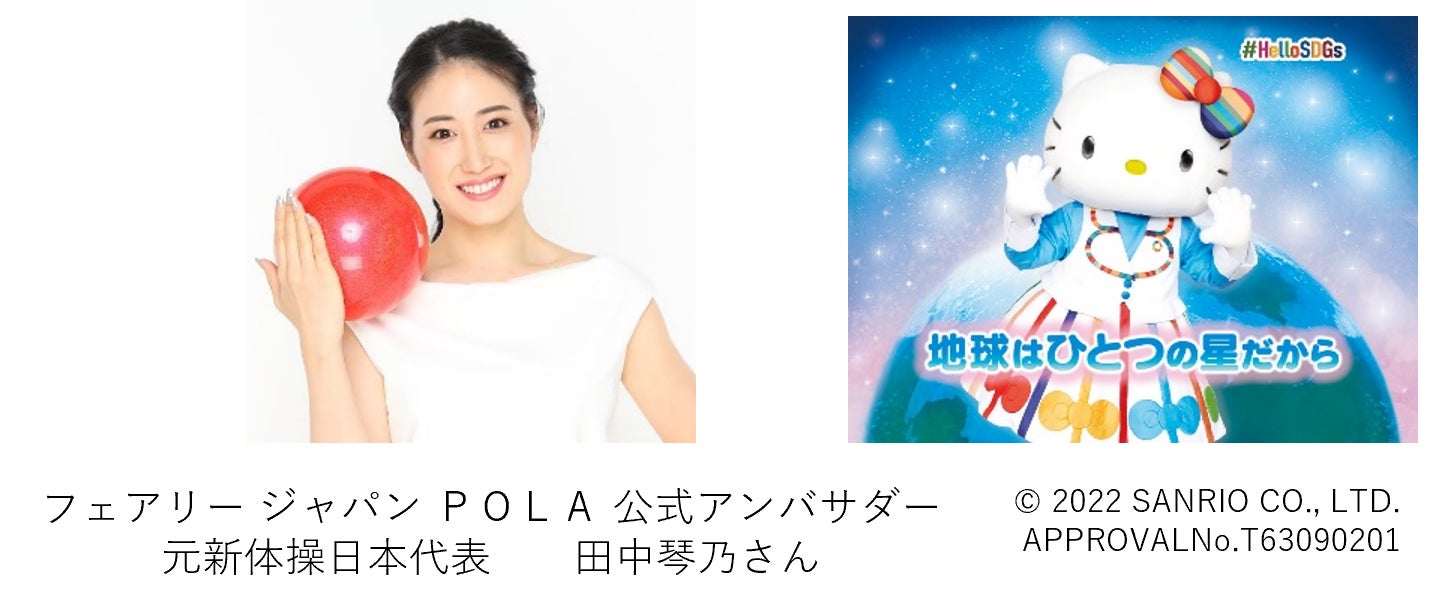 イベントには、大分県別府市出身であり、新体操日本代表として活躍し、現在はフェアリー ジャパン POLA 公式アンバサダーを務める、田中琴乃さんがスペシャルゲストとして登場。新体操キッズに応援メッセージを送っていただきます。また、地元新体操クラブチームの演技披露や、ハローキティが SDGs の大切さを伝えてくれるオリジナル参加型ライブショー「Team HelloSDGs ~地球はひとつの星だから~」、ミニ抽選会を予定しています。