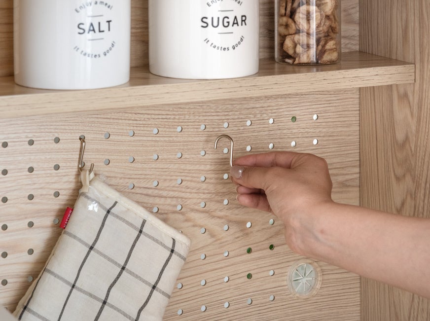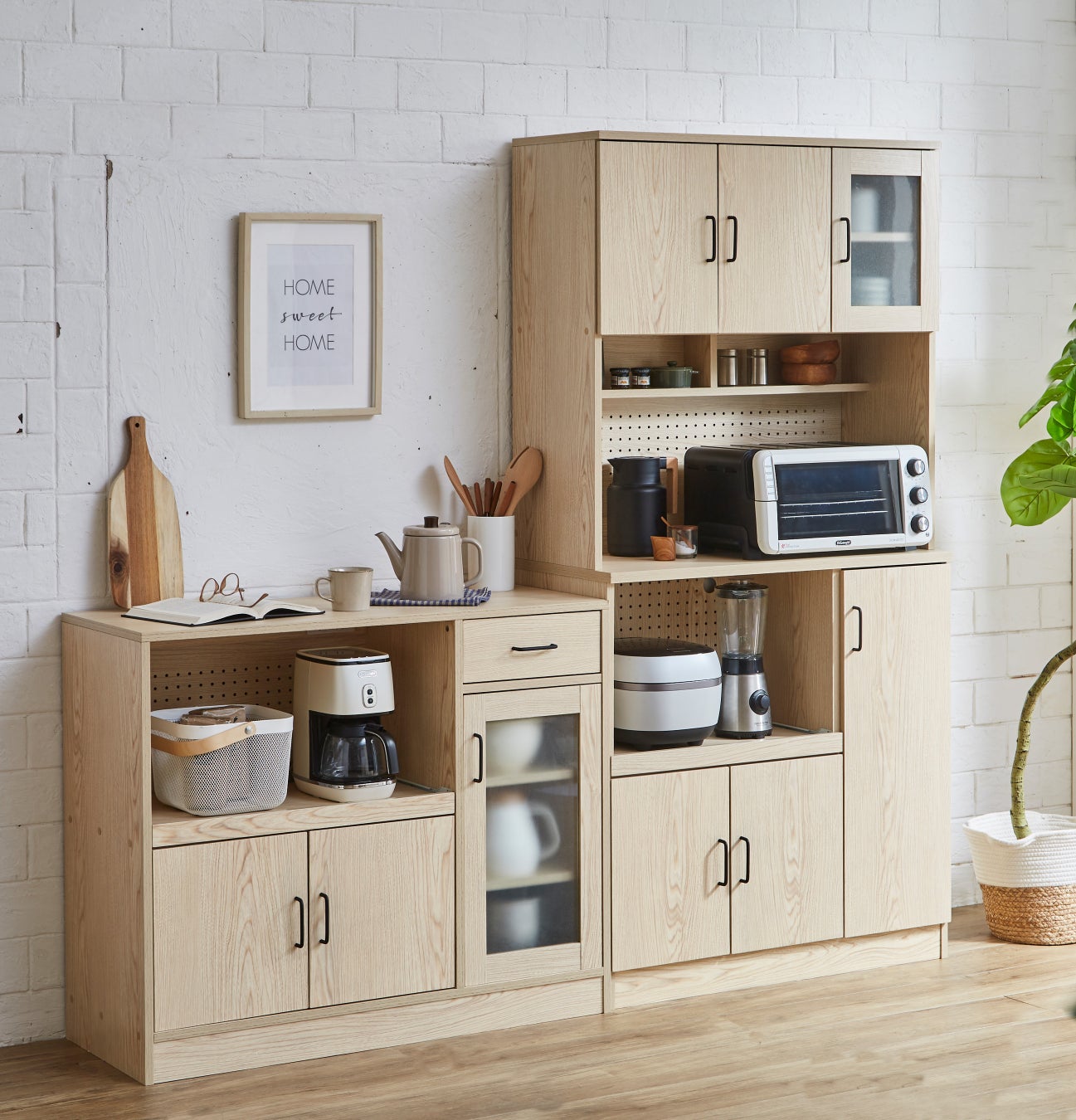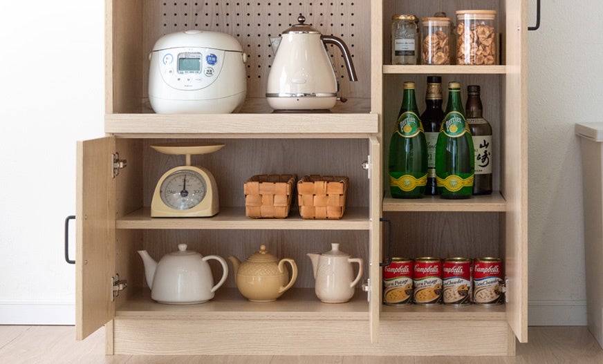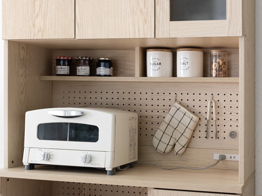 新生活にピッタリ! “有孔ボード付きキッチン収納”発売開始!家電、食器、食品ストックまで、これ1台で省スペースに整理可能