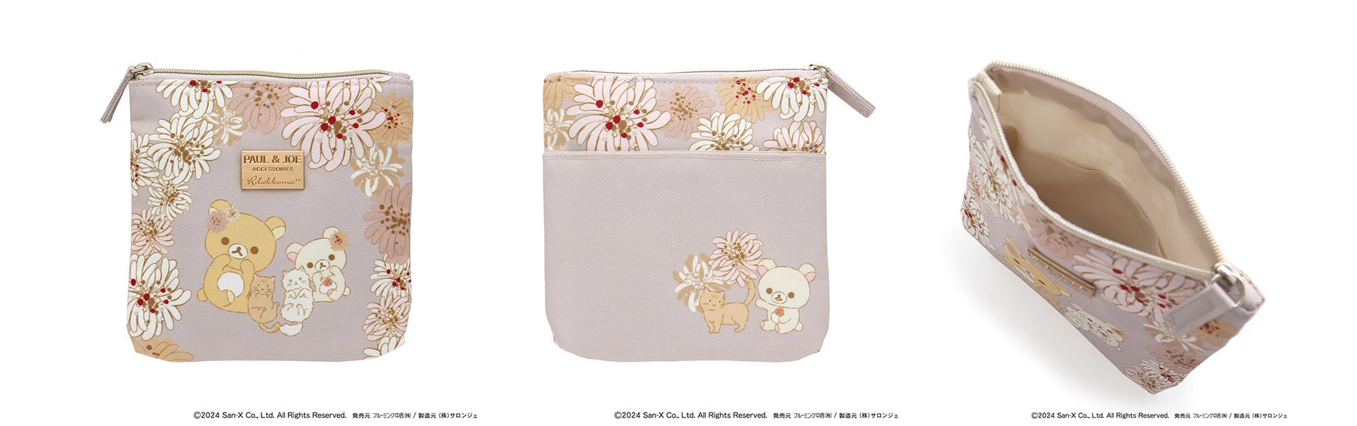 PAUL & JOE(ポール & ジョー)のシンボルモチーフとして愛される『クリザンテーム(西洋菊の一種)』やPAUL & JOEのクリエイティブディレクター、ソフィー・メシャリーの愛猫の『ジプシー』『ヌネット』と人気キャラクターの『リラックマ』『コリラックマ』が優しく寄り添う、本コラボ限定の特別な描き下ろしアートができました。華やかなデザインの新作コレクションがあなたの心にときめきと癒しをお届けします。