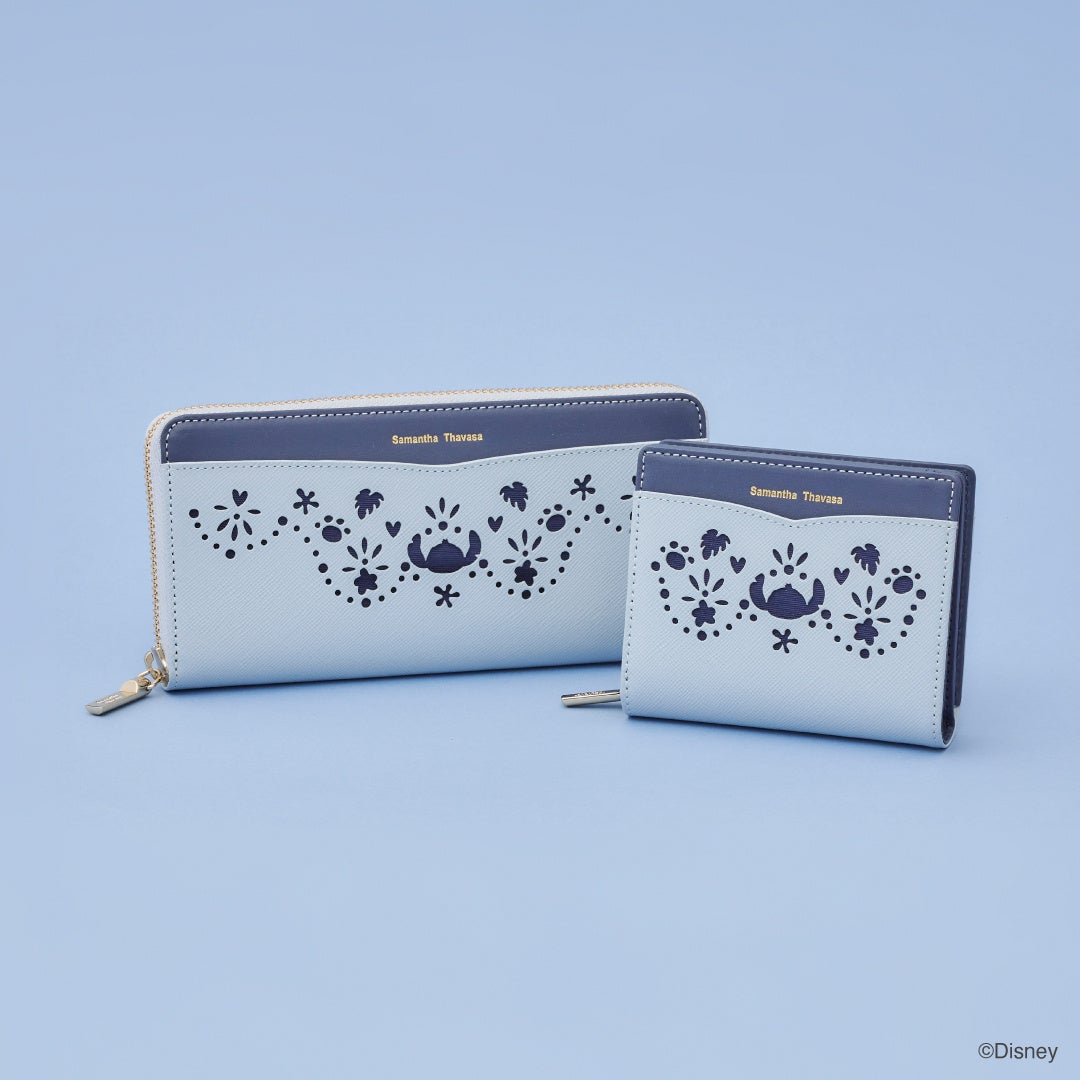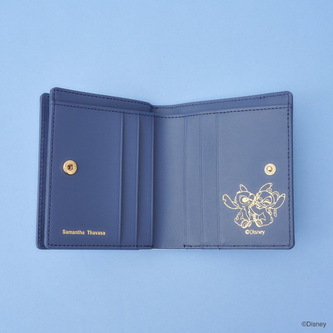 折財布には、「スティッチ」と「エンジェル」の箔押しがデザインされています。