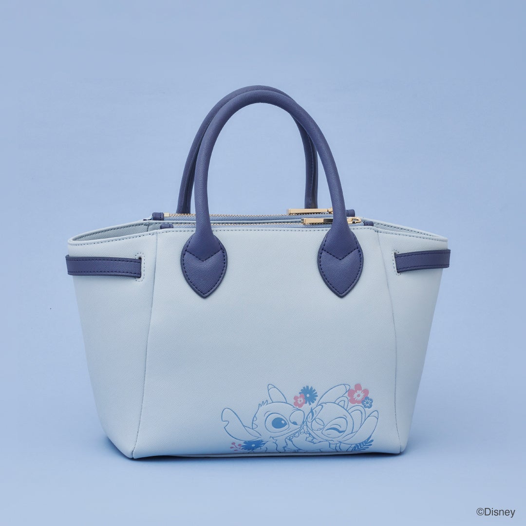 「スティッチ」をイメージしたバッグ全体の配色や、パドロックにデザインされたビジューのカラーに注目。「スティッチ」と「エンジェル」の仲睦まじい様子のアートを、型押しでデザインした背面とシンプルな面の2パターンで楽しめるデザイン。どちらを表にしても使用可能です。