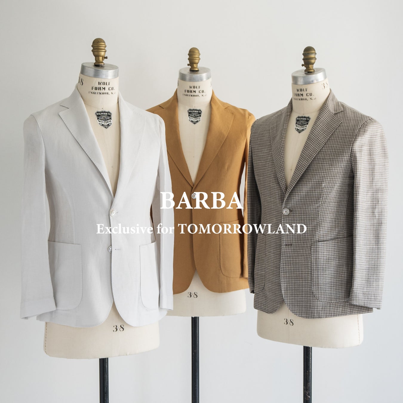 ナポリ創業のシャツ作りの技術をもとに商品展開を広げる〈BARBA〉との別注ジャケット〈BARBA for TOMORROWLAND〉が4月21日(金)より発売開始。