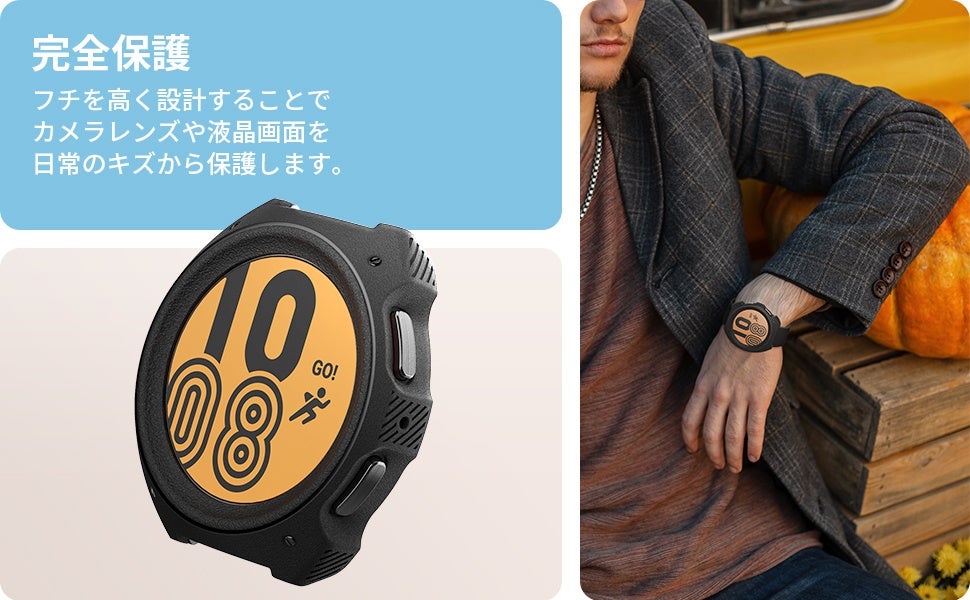 また、本体はプレミアムTPU、画面周りはPC(ポリカーボネート)素材を採用したバンド一体型ケースです。技術的な面でもデジタルベゼルリング干渉を最小化するように設計されました。
