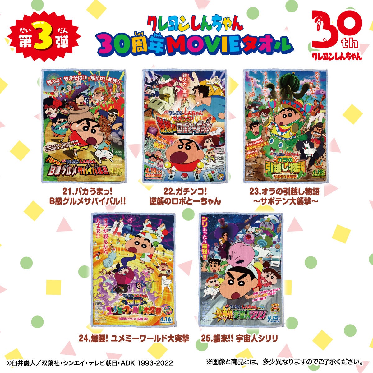- クレヨンしんちゃん 30周年MOVIEタオル 作品ラインアップ
