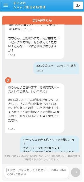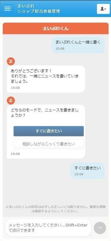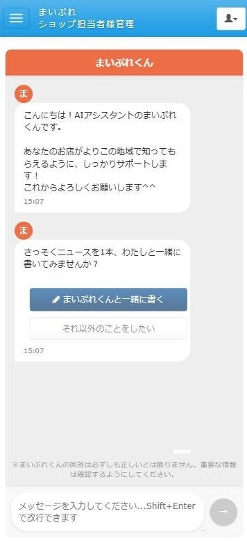 『まいぷれくん』は、地域情報プラットフォーム「まいぷれ」に蓄積されたデータをAIが分析し、効果的なPR文章の自動生成・PR方針の提案などをする地域情報特化型のAI経営支援サービスです。