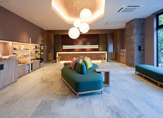 館内は、阿蘇の豊かな自然をモチーフに、木の素材を活かした温かみのある空間で統一しています。お客様が最初に訪れるロビーラウンジには、阿蘇の風景をイメージしたデザインを取り入れ、客室には、熊本城や辛子蓮根など熊本にゆかりのあるモチーフをあしらったアートを設置し、ポップな色調で滞在に彩りを添えます。阿蘇の自然や熊本の文化を身近に感じながら、心安らぐひとときをお過ごしいただけます。