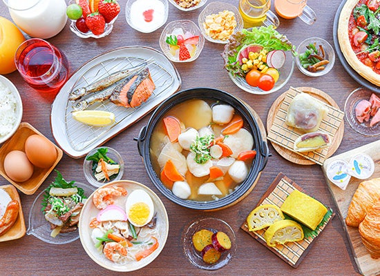熊本の伝統野菜「ひご野菜」を味わうサラダや、熊本名物「だご汁」、春雨と野菜のやさしい味わいが特長の「太平燕(タイピーエン)」、郷土料理の「ひともじぐるぐる」に加え、熊本ならではの味覚である「辛子れんこん」など、地元ならではの食材を取り入れた多彩なラインアップを日替わりでご用意しています。長期滞在のお客様にも、毎朝新しい味との出会いと、心潤うひとときをお過ごしいただけます。