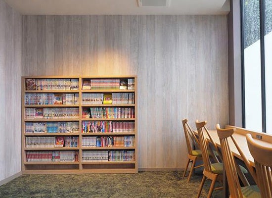 1階には大浴場に隣接したリラクゼーションラウンジを設け、湯上がり後にゆったりとくつろげる空間を整えました。マッサージ機や漫画コーナーも備え、思い思いの時間をお過ごしいただけます。