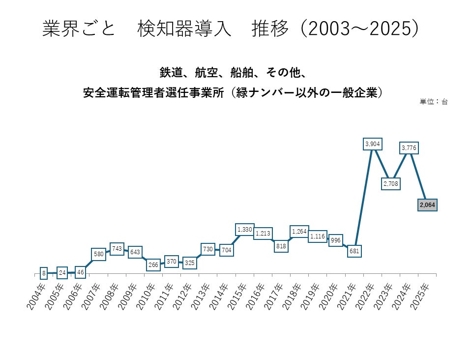 ⾃動点呼システム、運⾏管理システム、安全運転管理システム、労働安全衛⽣システムを開発・販売する東海電⼦株式会社(本社:静岡県富⼠市 代表取締役 杉本哲也)は、2025年11月13日に、最新の業務⽤呼気アルコール検知器(東海電⼦製)の納⼊先業種・機種レポート2025年版(2003〜2025年分)を発⾏致しました。