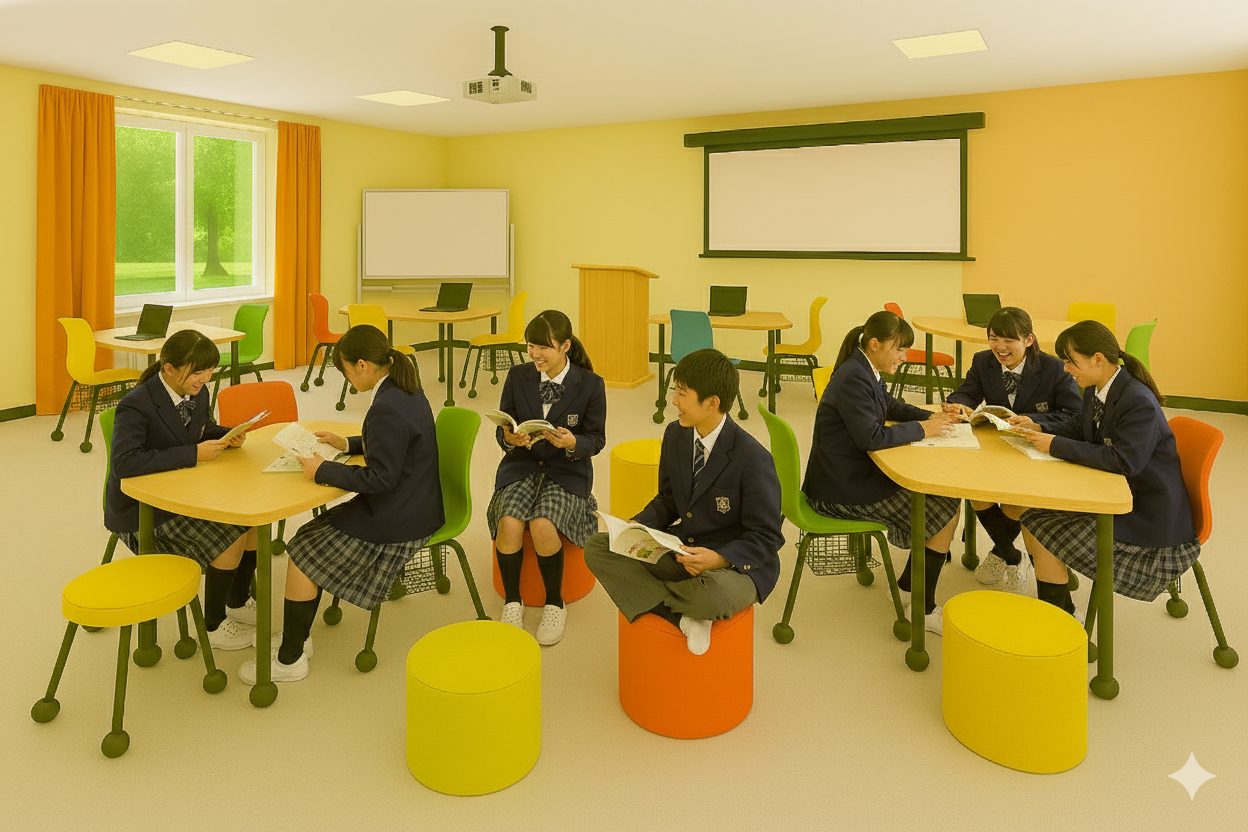 ・可動式の机や椅子を設置してグループワークなど協働的な学びを実現