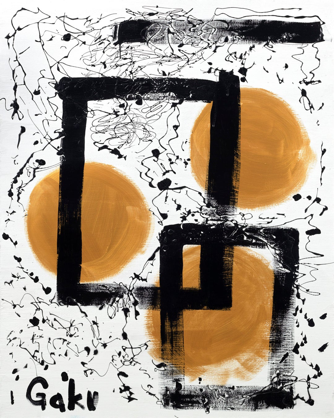 今回の展覧会では、GAKUが2020年から2023年にかけて制作した作品を中心に展示しています。鮮やかな色遣いとポップな作風が特徴のGAKUの作品は、いつも観る人々に自由でハッピーな印象を与えますが、この時期は絵を描き始めて3年、作風において多様なチャレンジを試みた「野心的な」時期であるため、この時期ならではの貴重な作品も含まれています。特に、白と黒を基調とし、ドリッピング的に絵具を画面に離散させた作品など、必見の内容となっています。
