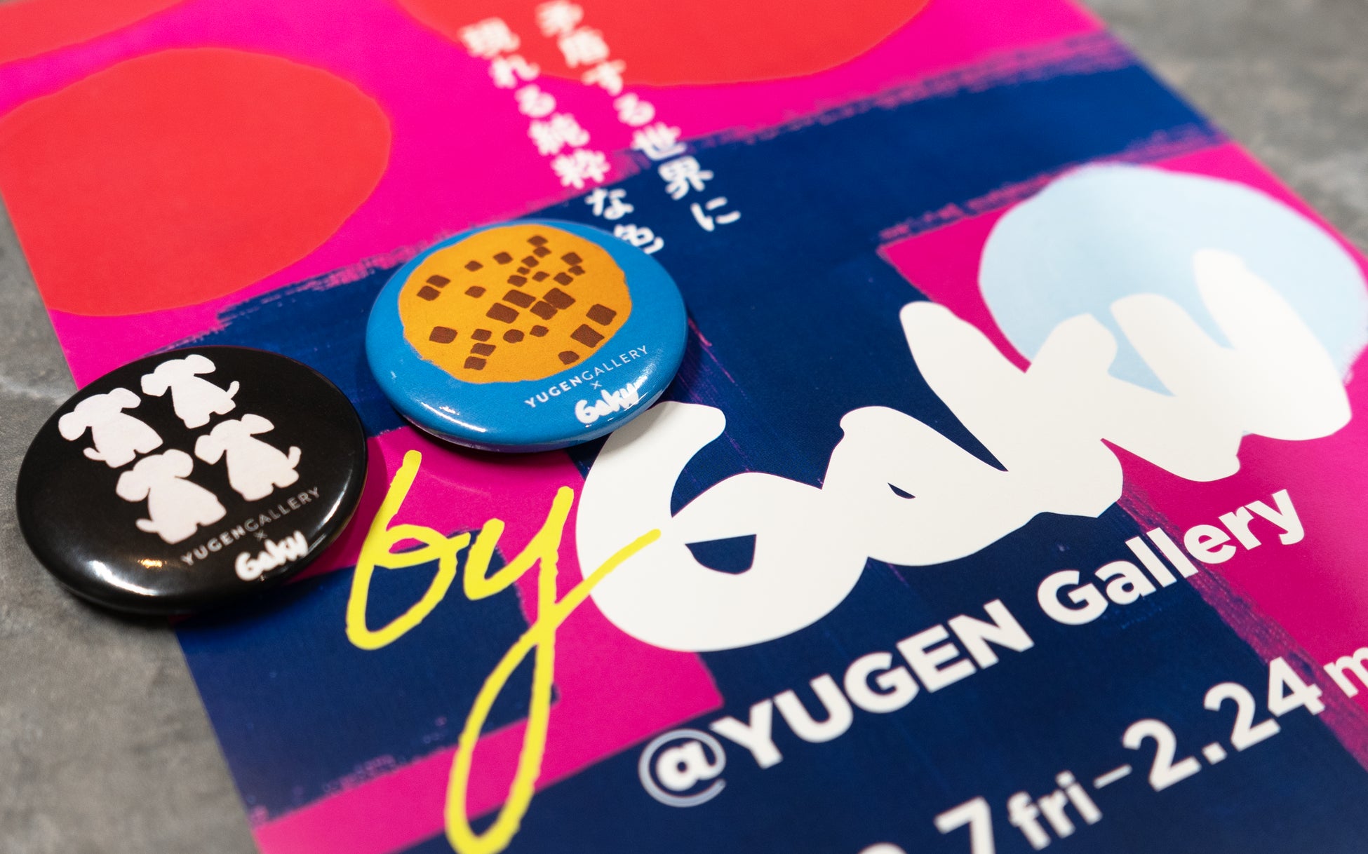 【YUGEN Gallery】現在開催中のGAKU個展「by GAKU@YUGEN」にて、来場者限定でオリジナル缶バッジをプレゼント!