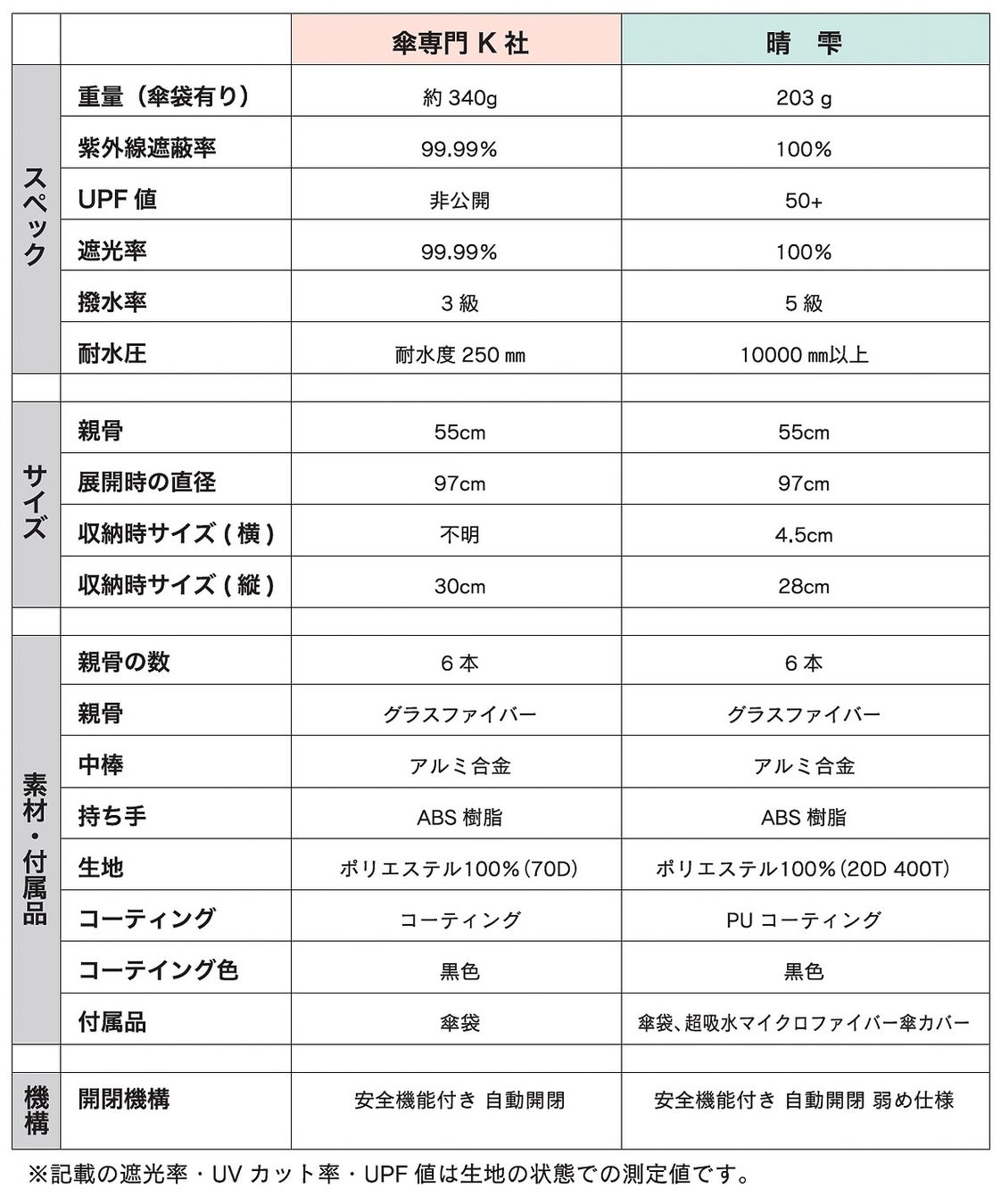 性能:UVカット率100%、遮光率100%、撥水度5級(耐水圧10,000mm以上)