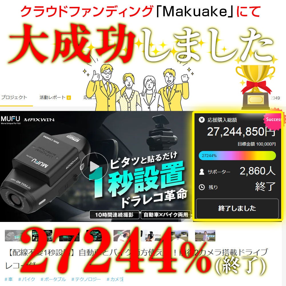 Makuakeで先行販売し約1か月で総額27,244,850円売り上げた話題のMAXWIN車バイク両用ドライブレコーダーが一般販売を開始しました!