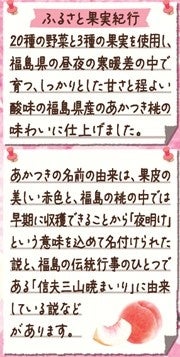 「野菜生活100季節限定シリーズ」から新たに発売する「野菜生活100福島あかつき桃ミックス」は、福島県の昼夜の寒暖差の中で育つ、しっかりとした甘さと程よい酸味の福島県産のあかつき桃の味わいの野菜・果実100%ミックスジュース※1です。あかつきの名前の由来は、果皮の美しい赤色と、福島の桃の中では早期に収穫できることから「夜明け」という意味を込めて名付けられた説と、福島の伝統行事のひとつである「信夫三山暁まいり」に由来している説などがあります。砂糖不使用で、たっぷりビタミンCを摂ることができます。朝食のおともや、リフレッシュしたいときにおすすめです。