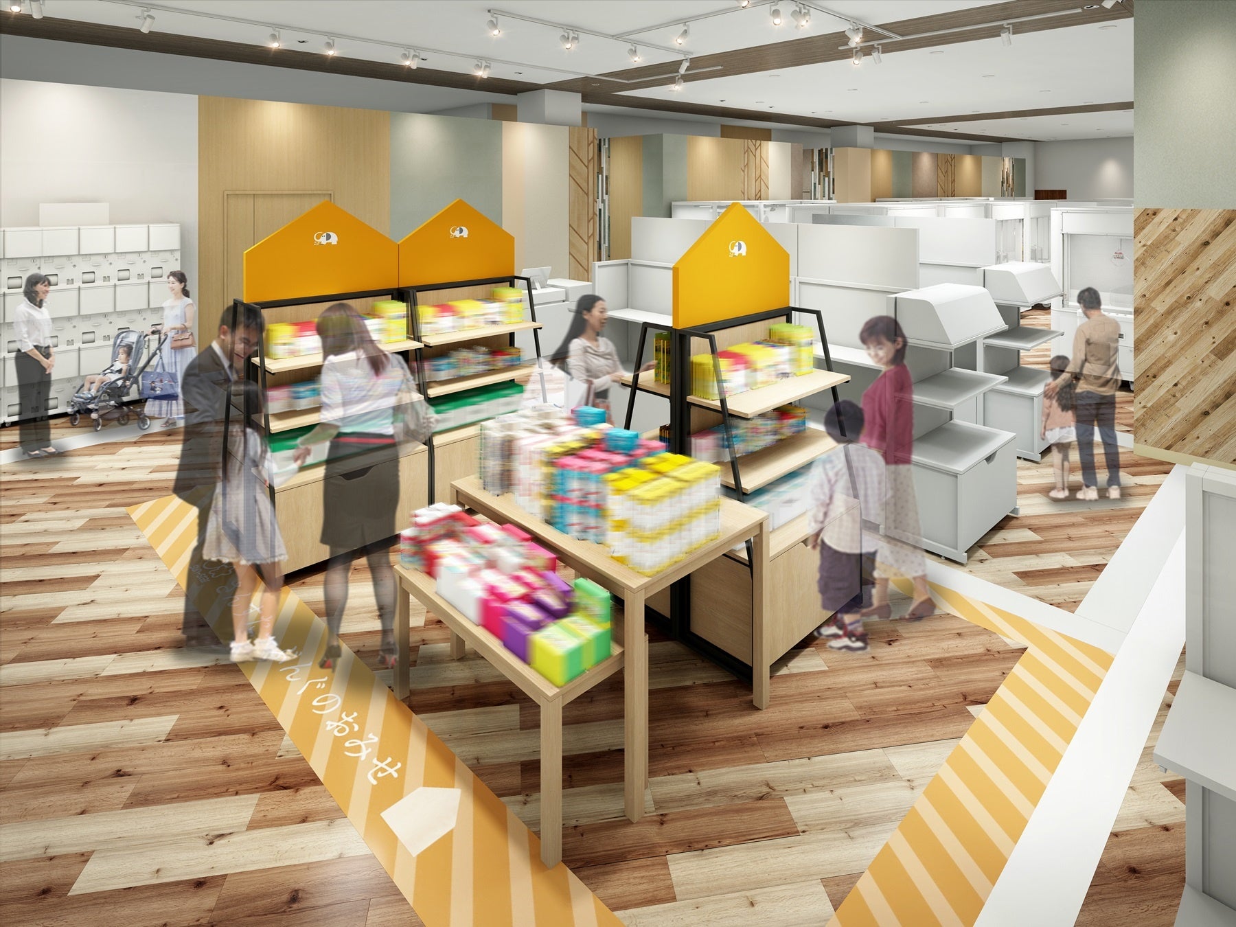 「おいしくて楽しい」をコンセプトにしたエンタメ菓子(釣りグミシリーズなど)、キャラクター菓子、そして低単価で高クオリティな食玩(フィギュア、ウエハースシリーズなど)を豊富に取りそろえています。フィギュアなどのサンプルを展示するショーケースを設置し、実際に目で見て楽しむことができる売り場が特徴です。