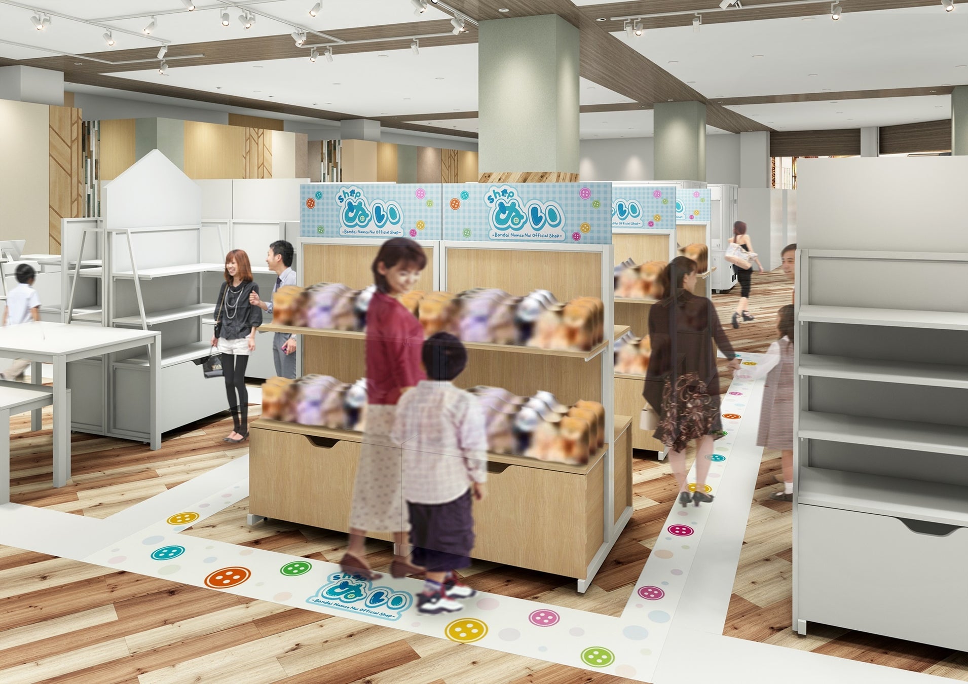 同施設内で展開中の「ナムコ」と同じ4階フロアに、「ガシャポンバンダイオフィシャルショップ」「さんすたーぶんぐのおみせ」「shopぬい」「BANDAI CANDY OFFICIAL SHOP」「ライフスタイル オフィシャルショップ」の5店舗を同時オープンします。バンダイナムコグループの充実したコンテンツで、お客さまに“笑顔と楽しい思い出を届ける空間”を提供し、地域のみなさまに愛されるエンターテインメント施設を目指します。