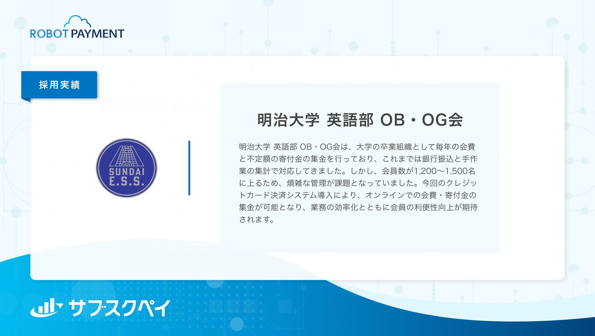 約1,500名在籍する明治大学 英語部 OB・OG会が「サブスクペイ」を採用