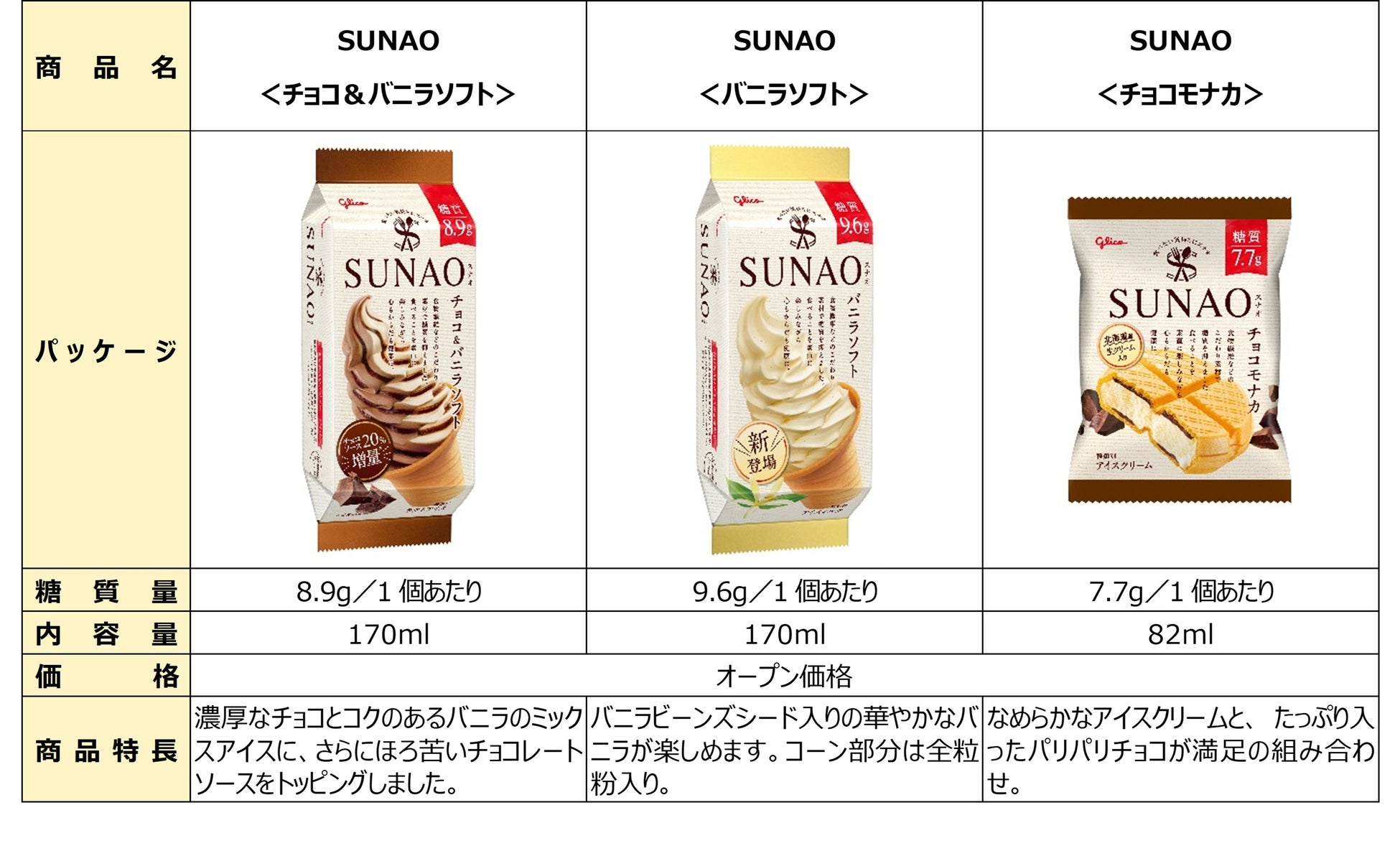 | ブランドサイト :http://cp.glico.jp/sunao/ SUNAO Twitter アカウント:https://twitter.com/sunaochan_glico |