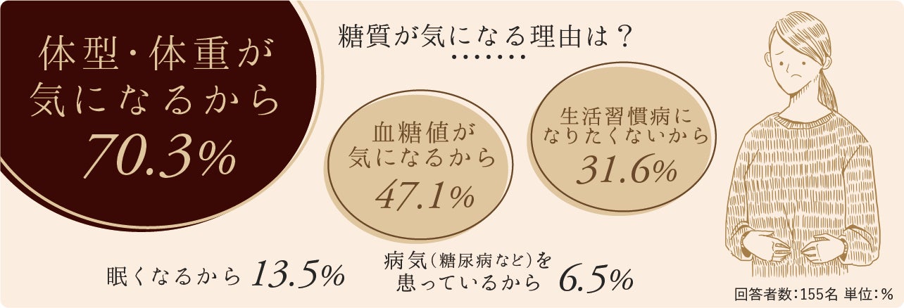 糖質を気にする理由のトップは「体型・体重が気になるから(70.3%)」との結果となりました。【図4】