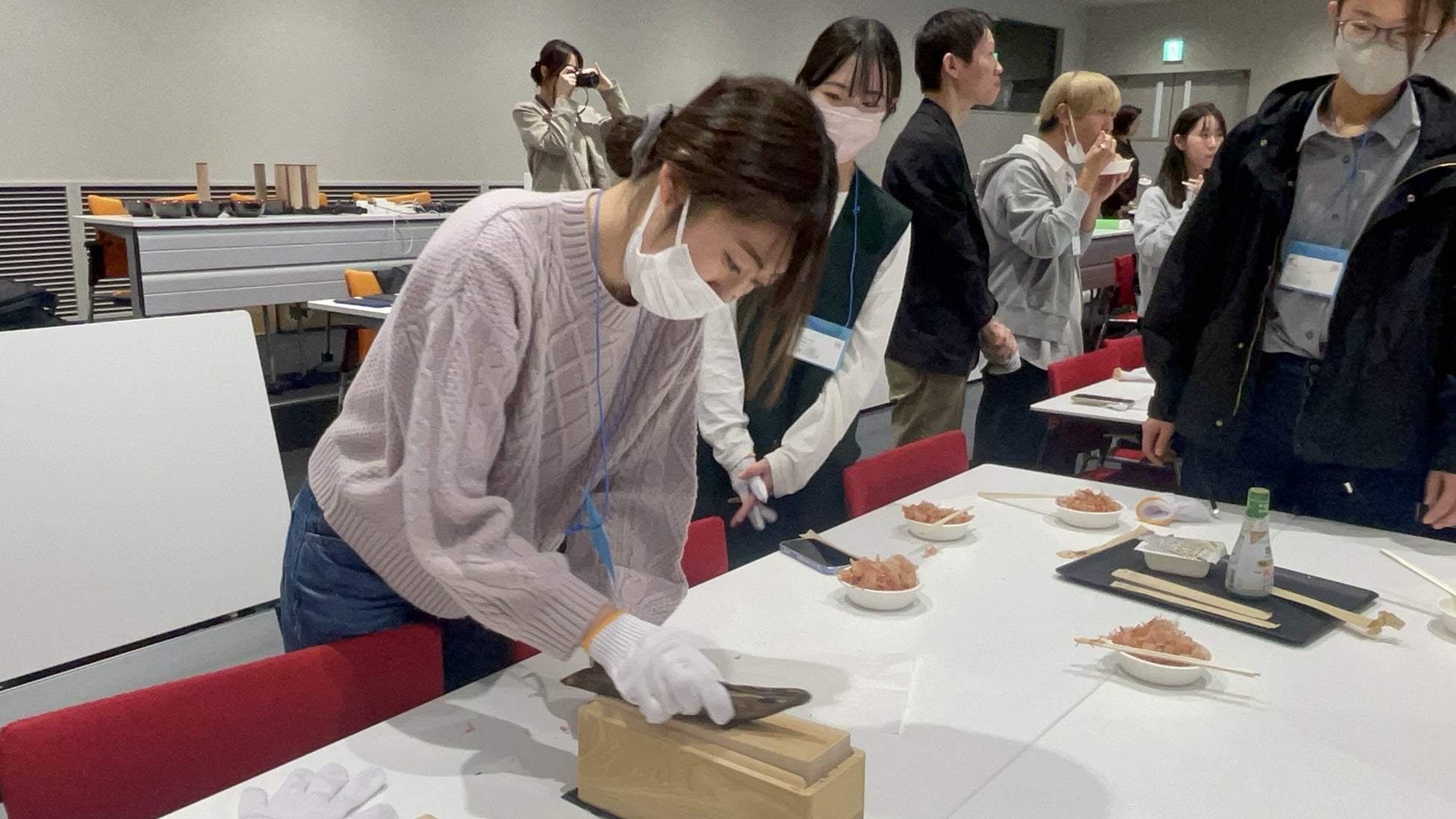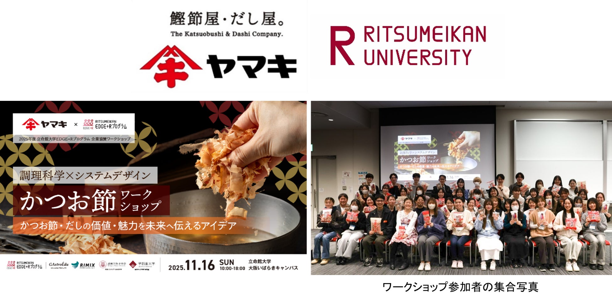 ヤマキ株式会社(本社:愛媛県伊予市 代表取締役社長:城戸善浩 以下ヤマキ)は、立命館大学・武庫川女子大学本田研究室・早稲田大学野中研究室と共同で、2025年11月16日(日)に「かつお節ワークショップ」を開催しました。本ワークショップは、イノベーション創出人材の育成を目的とした立命館大学「EDGE+Rプログラム」の一環として実施されたものです。