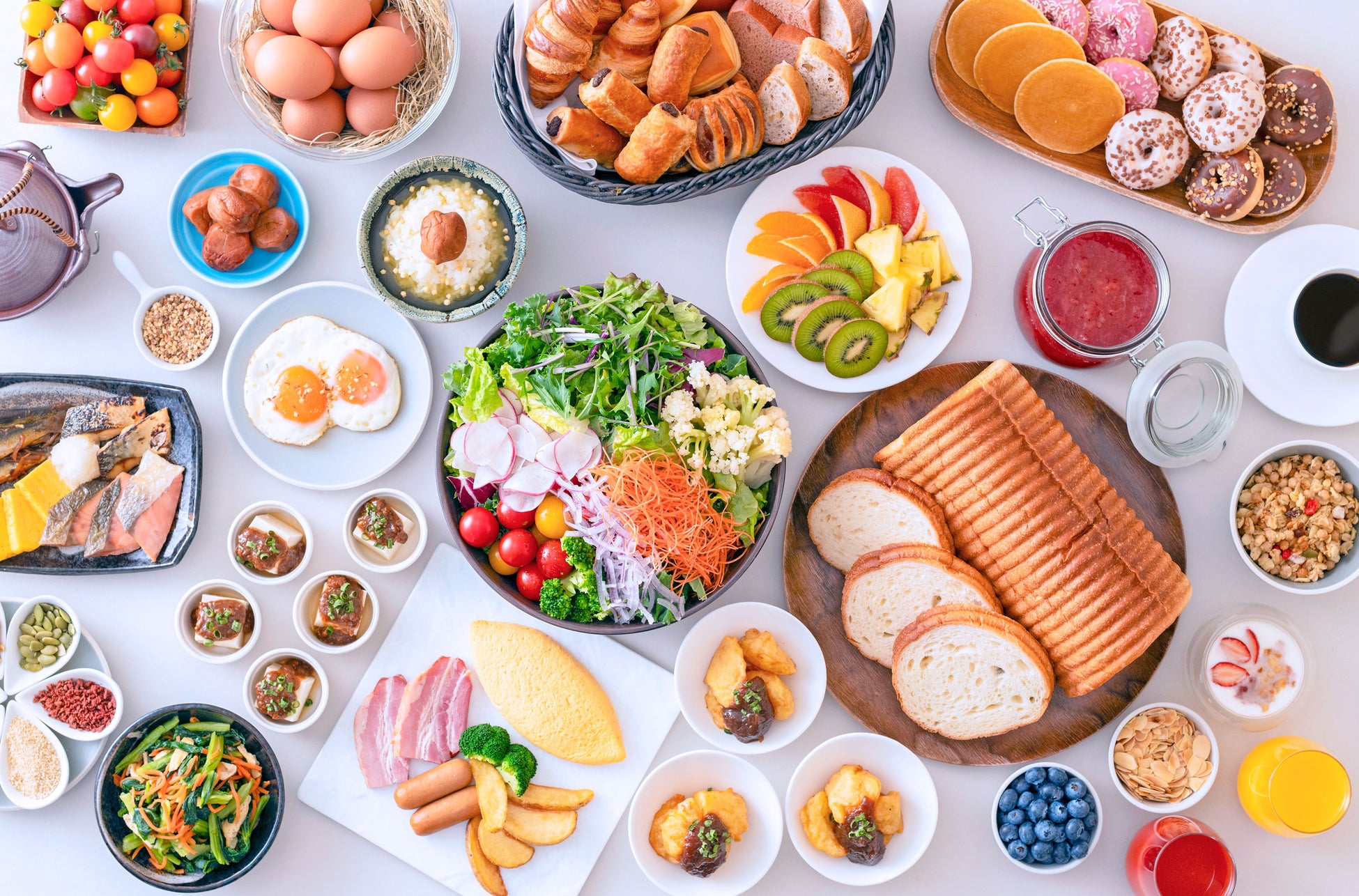 ●その他:スクランブルエッグ、オムレツ、ベーコン、ソーセージ、パンケーキ、フライドポテト、コーンポタージュ、シリアル各種、プレーンヨーグルト、フルーツカクテル、キウイスムージー、フルーツ各種、デザート2種、ドレッシング各種、クロワッサン、チョコデニッシュ、ストロベリーデニッシュ、食パン、トゥルト(ライ麦パン)、ビーツとラズベリーのパン、チーズのヴィエノア、ドーナッツ各種、小松菜のお浸し、金平ごぼう、ひじきの煮物、大根おろし、いわし甘辛煮、国産マグロのたたき、長芋とろろ、かっぱ漬け、刻み沢庵、厚焼き玉子、納豆、味海苔、鮭の塩焼き、さば塩焼き、塩焼きそば、あっさり塩ラーメン、筑前煮、湯豆腐、お粥、味噌汁、白米(彩のきずな米)、ドリンク(ブレンドコーヒー、カフェラテ、カフェモカ、カプチーノ、アメリカン、ココア、オレンジジュース、アップルジュース、牛乳、ウーロン茶、ほうじ茶、煎茶、レモンティー、ダージリンティー、ルイボスティー、水)