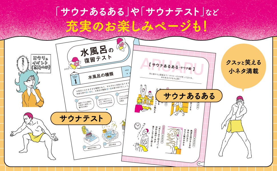 各章にはお楽しみ要素として「サウナあるある」や、内容のおさらいとしての「サウナテスト」などを収録。肩の力を抜いて楽しく学べます。