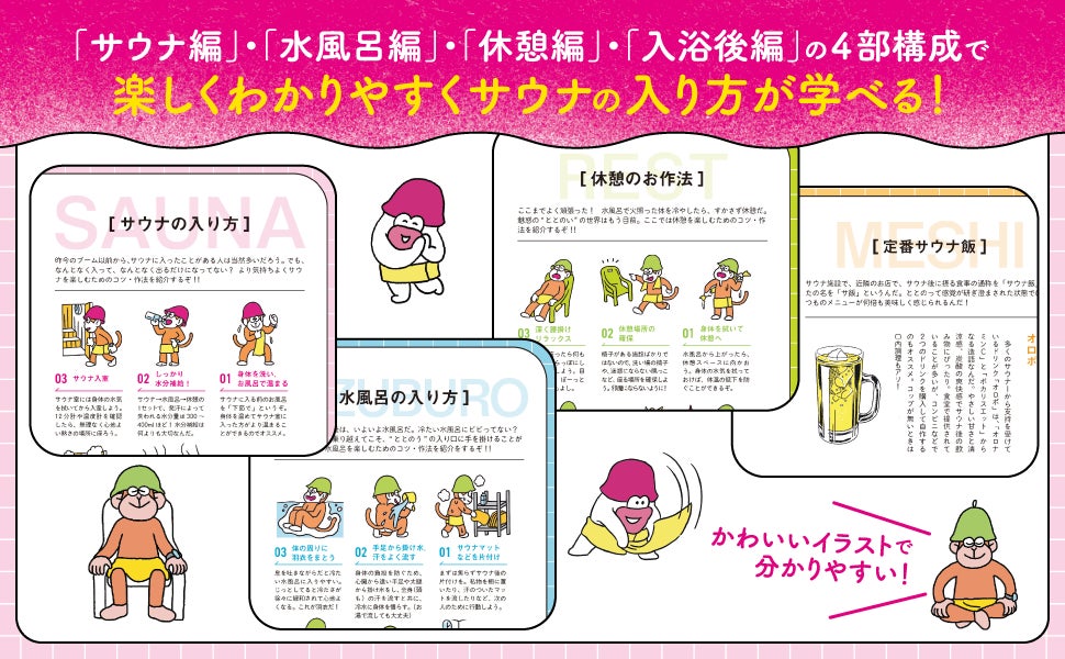 そんな悩みを持つ人のために、 『サルでもととのうサウナ教室』 は、笑いながら読めてしっかり学べる1冊に仕上がりました。