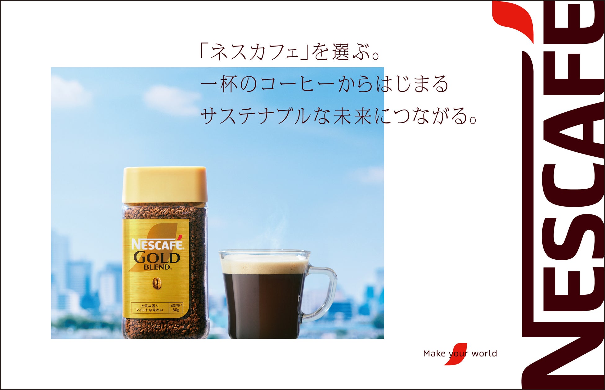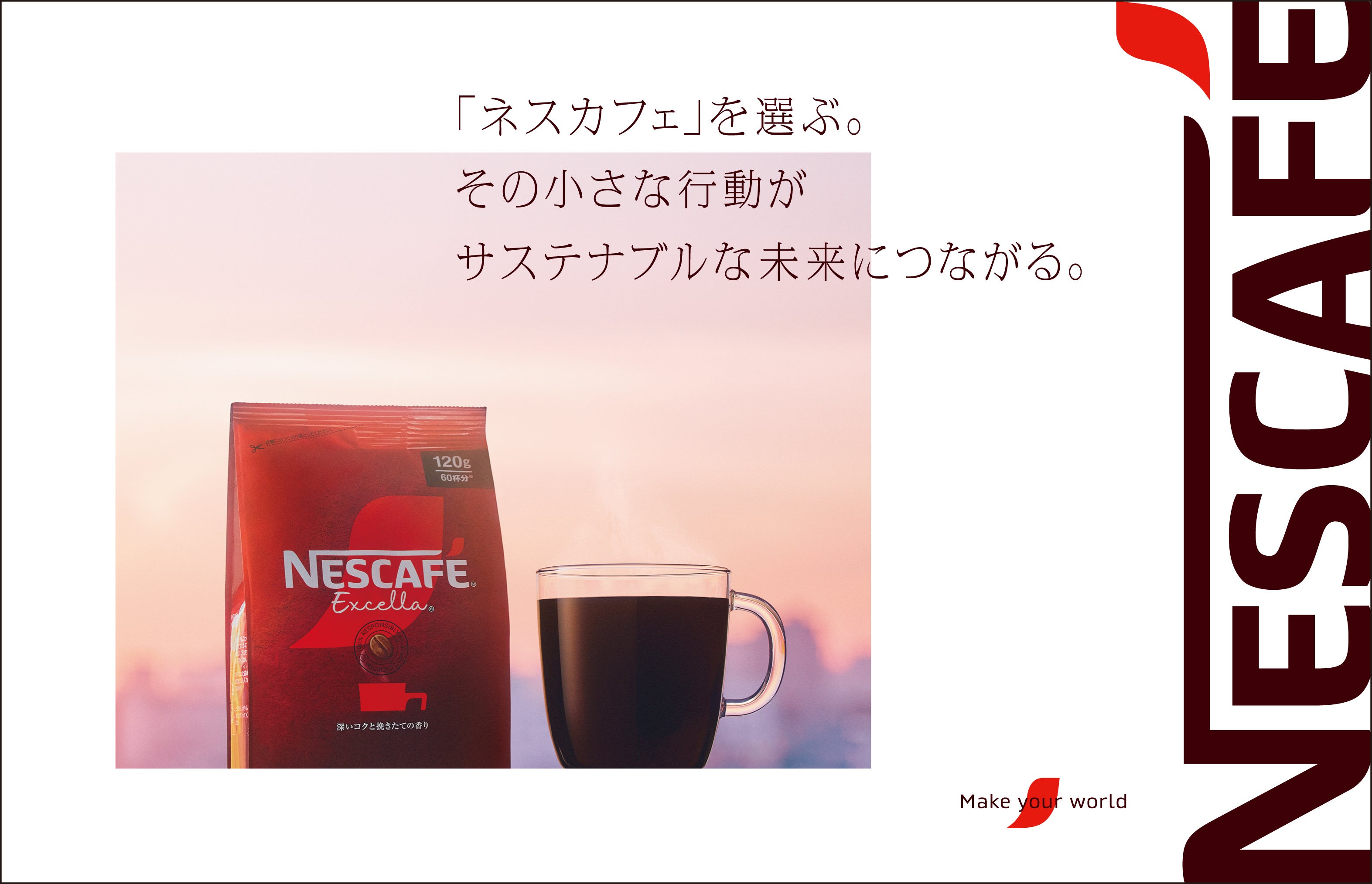 ネスレは、1938年に社会課題の解決をきっかけに生まれた「ネスカフェ」を通し、常に皆様においしいコーヒーを提供するよう尽力してきました。「ネスカフェ」は、サステナビリティをブランドの中心に据えて発展し、現在では世界中で愛飲されるコーヒーブランドになりました。「ネスカフェ」のコーヒーは、世界中で毎秒6,000杯が飲まれており、ネスレは農園から一杯のカップに至るまで、人々の生活と地球にポジティブなインパクトを与えることを目指しています。2023年からは新コンセプト“Make your world”のもとで、これからも皆様がおいしいコーヒーを飲み続けられる未来のために、グローバルコーヒーブランド「ネスカフェ」を通じてサステナビリティに取り組むことを表明しています。生産者や環境に配慮して作られたコーヒー豆を使用した「ネスカフェ」を毎日の一杯に選ぶことは、単においしいコーヒーの味と香りを楽しむだけでなく、地域社会、環境、そして世界の未来のための一歩につながります。