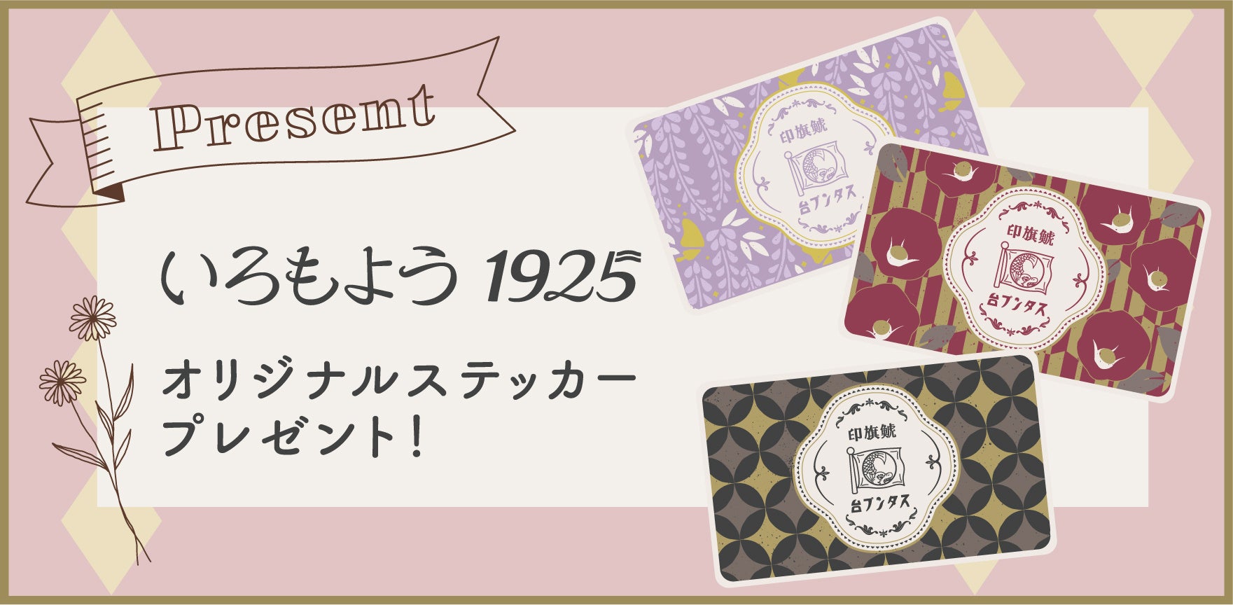 シヤチハタブースにて合計¥2,000以上お買い上げのお客さまに、いろもよう1925デザインをモチーフにしたステッカーをプレゼント。