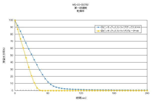 『速乾オックスボタンダウンシャツ』の方が約1/3のスピードで乾くことが分かった。