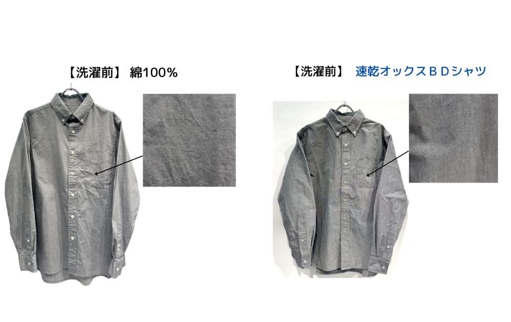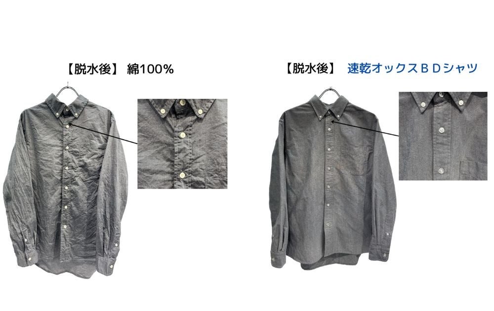 今回発売された『速乾オックスボタンダウンシャツ』の吸水速乾・シワ防止の効果を検証するために、