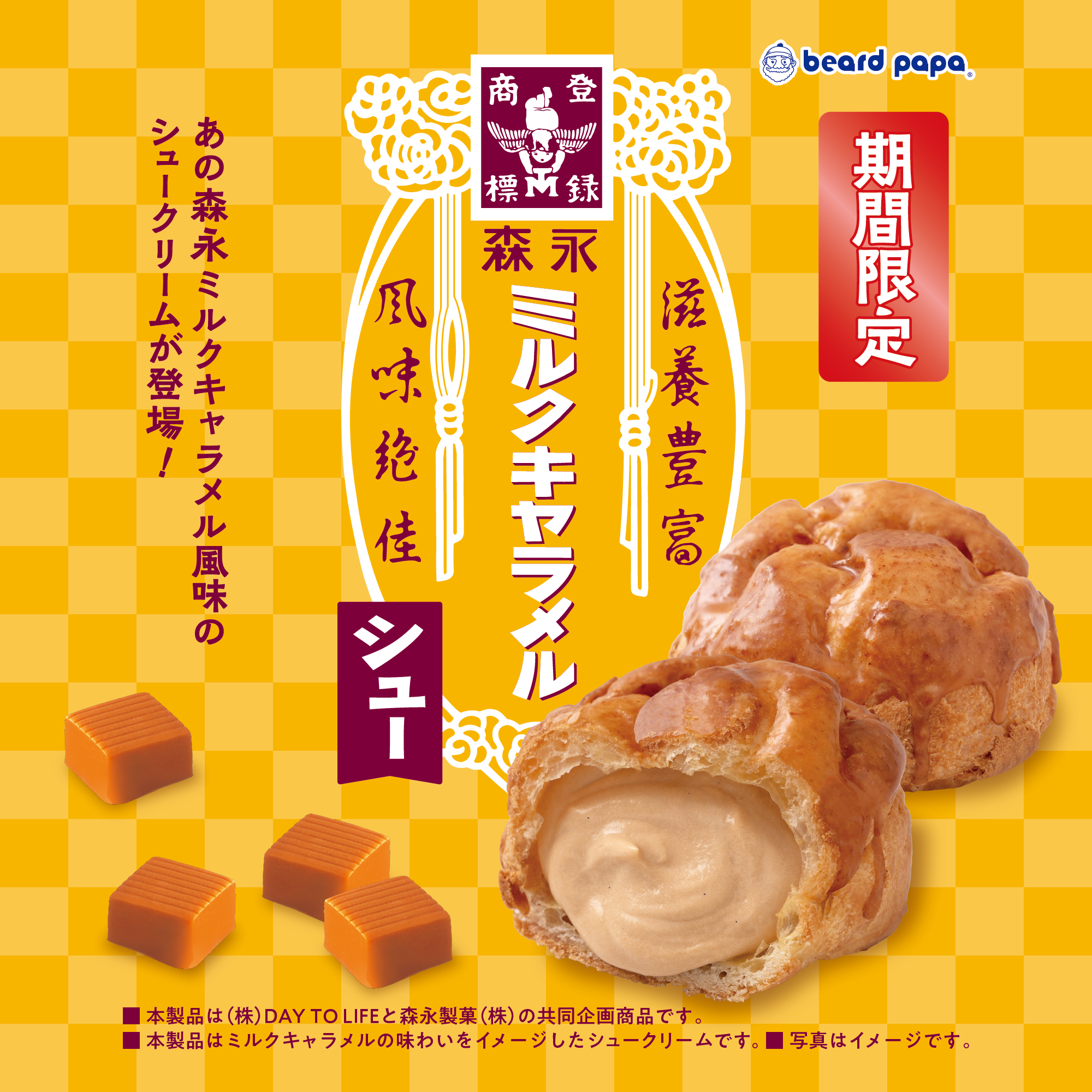 【ビアードパパ】世代を超えて愛されるロングセラー商品の味わいを再現!森永ミルクキャラメルとコラボレーションしたシュークリームを9月限定で販売