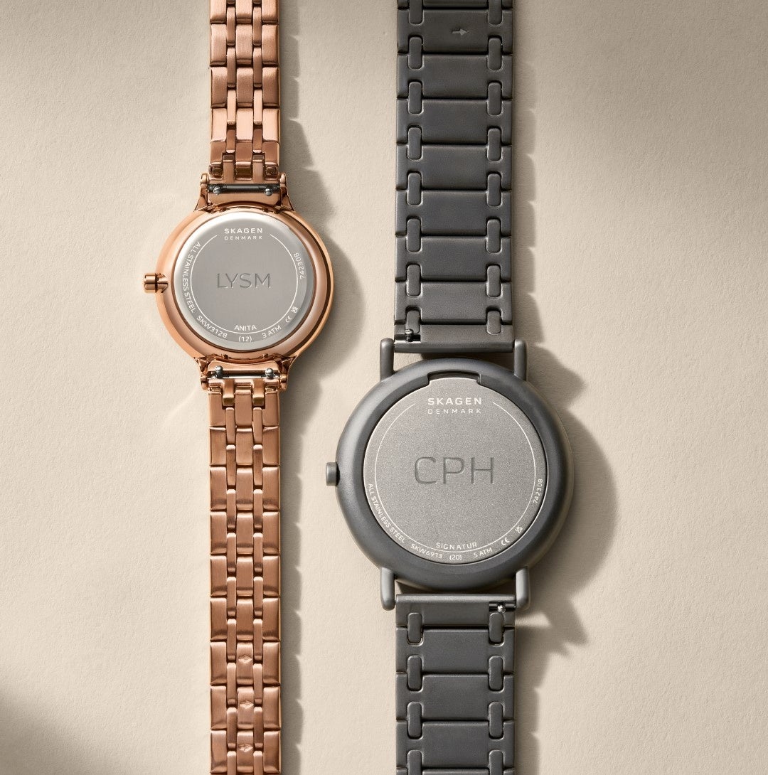 「”mit SKAGEN” ストア」にて「SKAGEN」をお買い上げのお客様限定で、ご購入いただいた腕時計の裏蓋に、イニシャルや日付、メッセージなどお好きな文字を無料で刻印いたします。