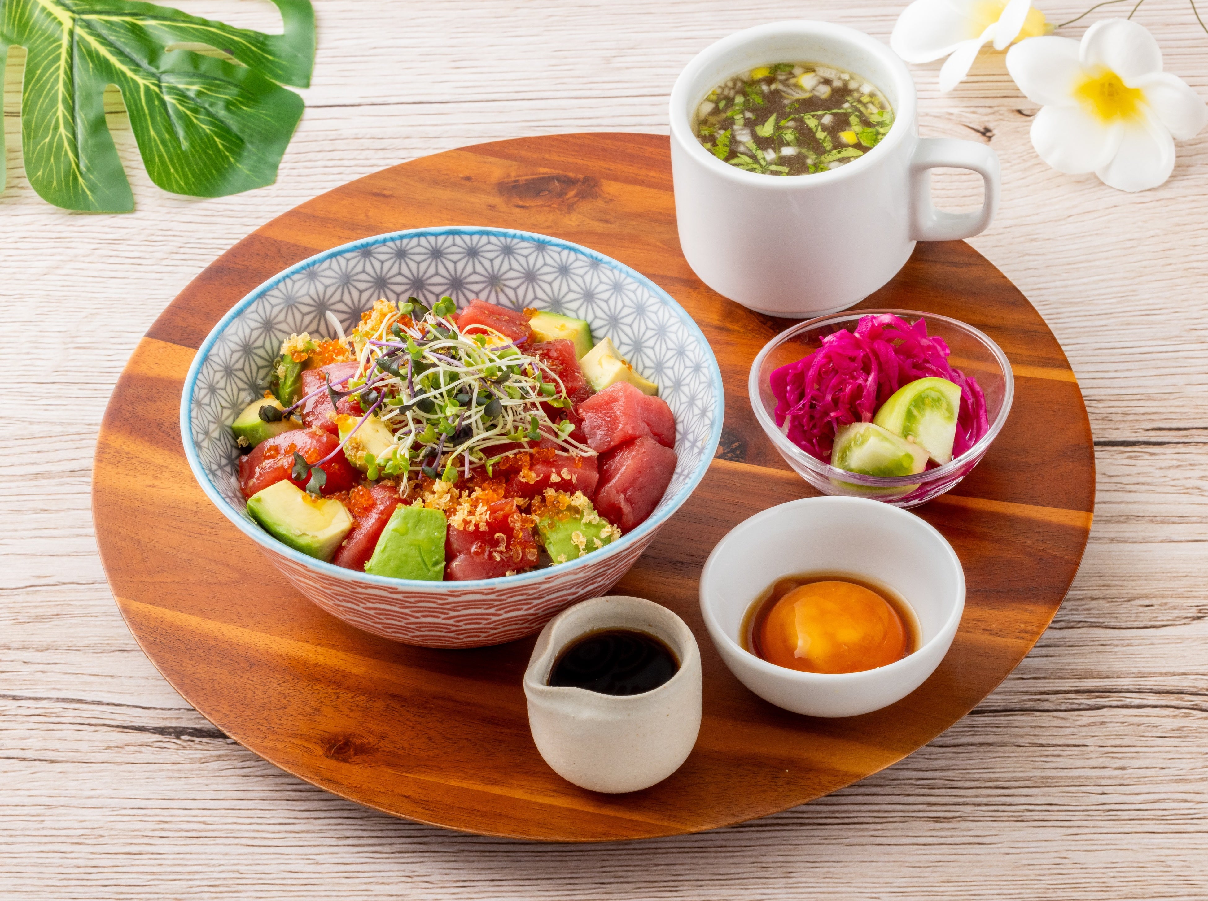 ハワイアンメニュー:アロハMIXプレート、マグロとアボカドのポキ丼