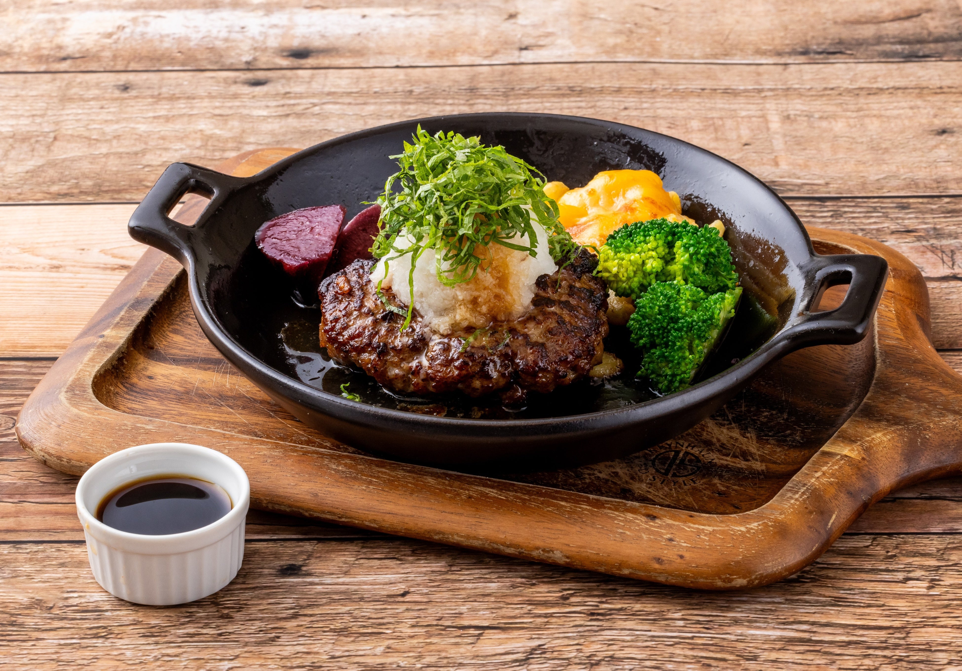 ・自家製手ごねハンバーグ(おろしポン酢/デミグラス/オニオンソース)1280円~