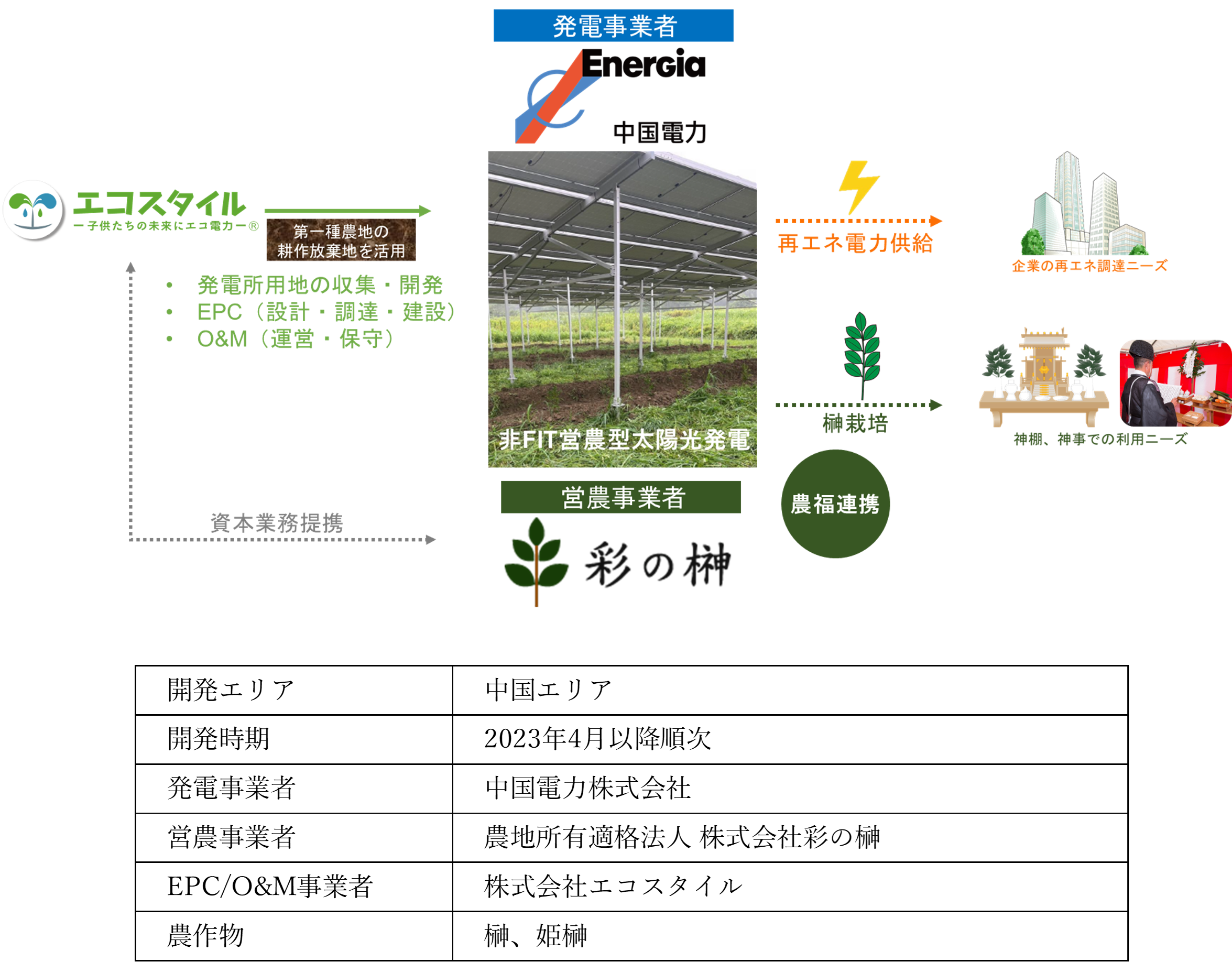中国電力と非FIT営農型太陽光発電所の開発に係る契約を締結~農福連携と再エネ電力供給を両立する開発を展開~