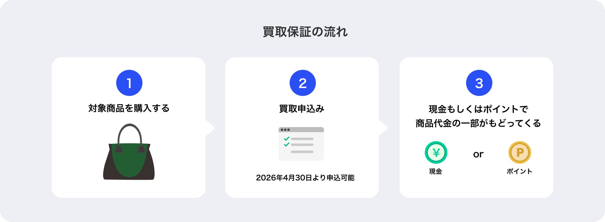 株式会社エニグモ(代表取締役最⾼経営責任者:須⽥将啓 本社:東京都港区、東証プライム:証券コード 3665)が運営するスペシャルティ・マーケットプレイス『BUYMA(バイマ)は、購入時に将来の買取金額を保証する新サービス「買取保証」を開始しました。本サービスは、保証期間内であれば商品を使わなくなったタイミングで買取申込みをするだけで、ご購入代金の一部が確定金額で戻ってくる仕組みです。金銭的なリスクを軽減して、「万が一使わなくなってもあんしん」という新しい購買体験を提供いたします。