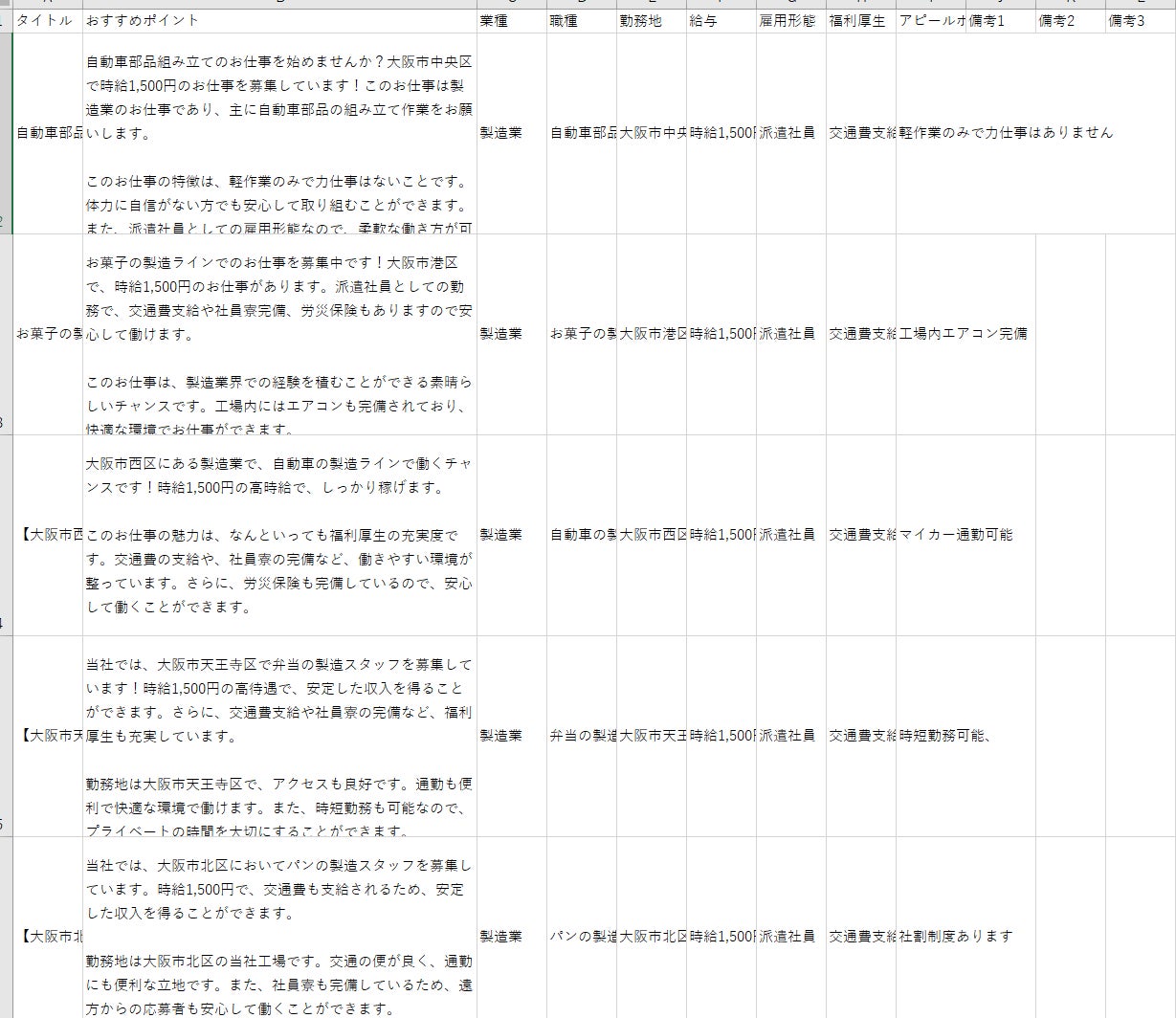 最大100件の求人情報(おすすめポイント、自己PRなど)を一度の作業で生成することが可能になりました。