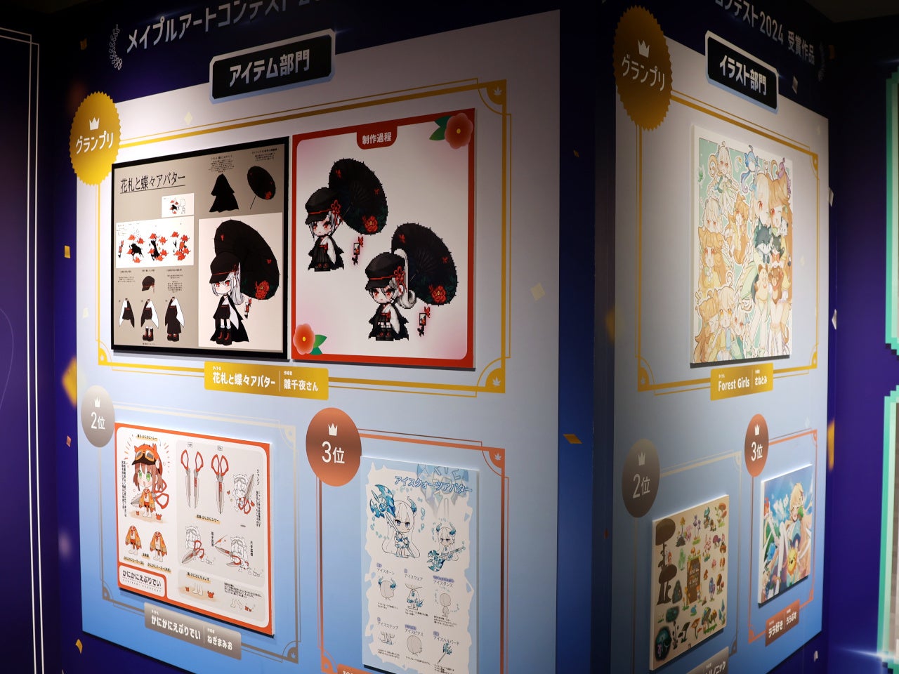 また交流広場には、メッセージを書いた付箋を貼って「CHASER」のロゴの完成を目指す「コミュニケーションボード」や、8月~9月にかけて実施した「メイプルアートコンテスト2024」の入賞作品も展示しています。